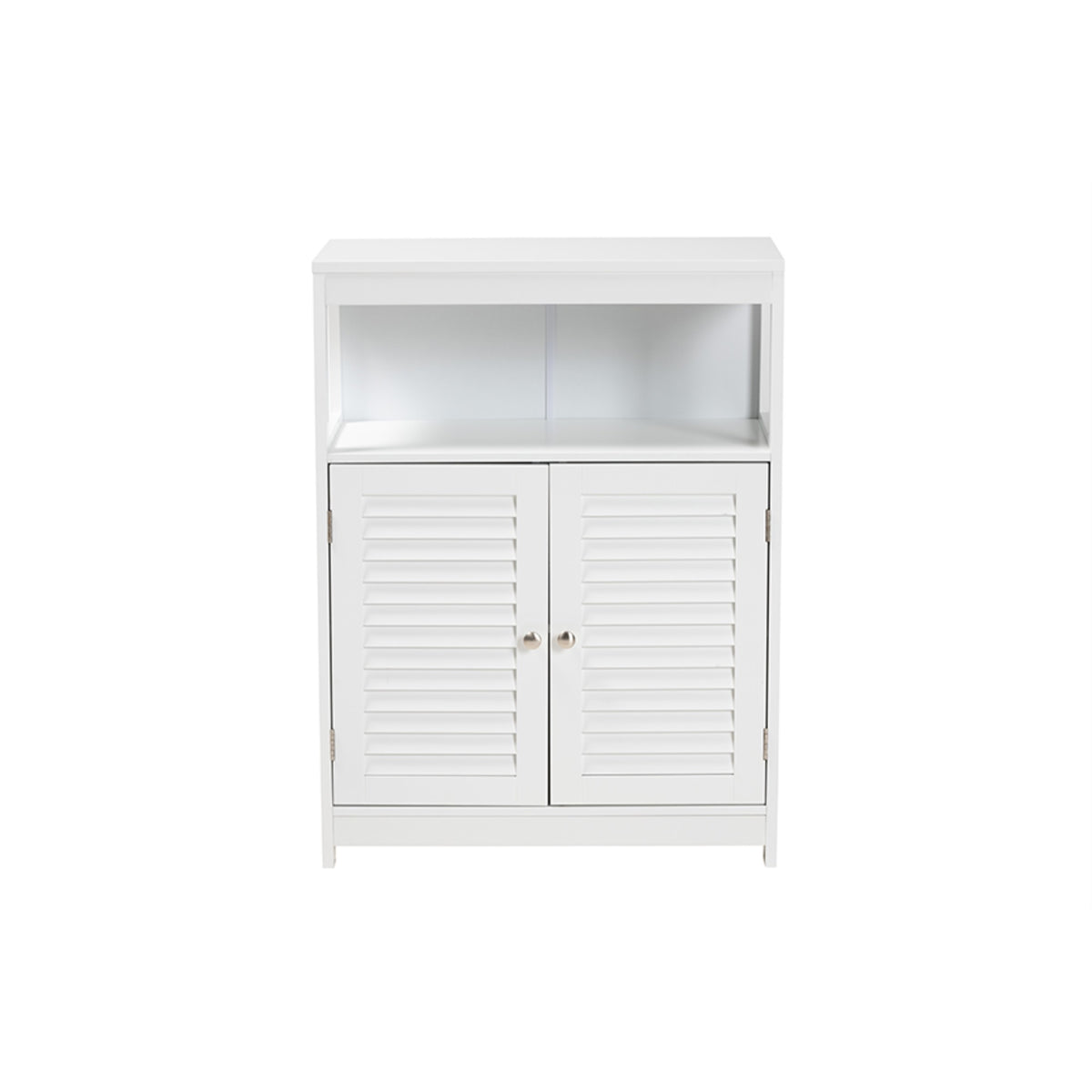 Baxton Studio Rivera Modern and Contemporary White Finished Wood and Silver Metal 2-Door Bathroom Storage Cabinet