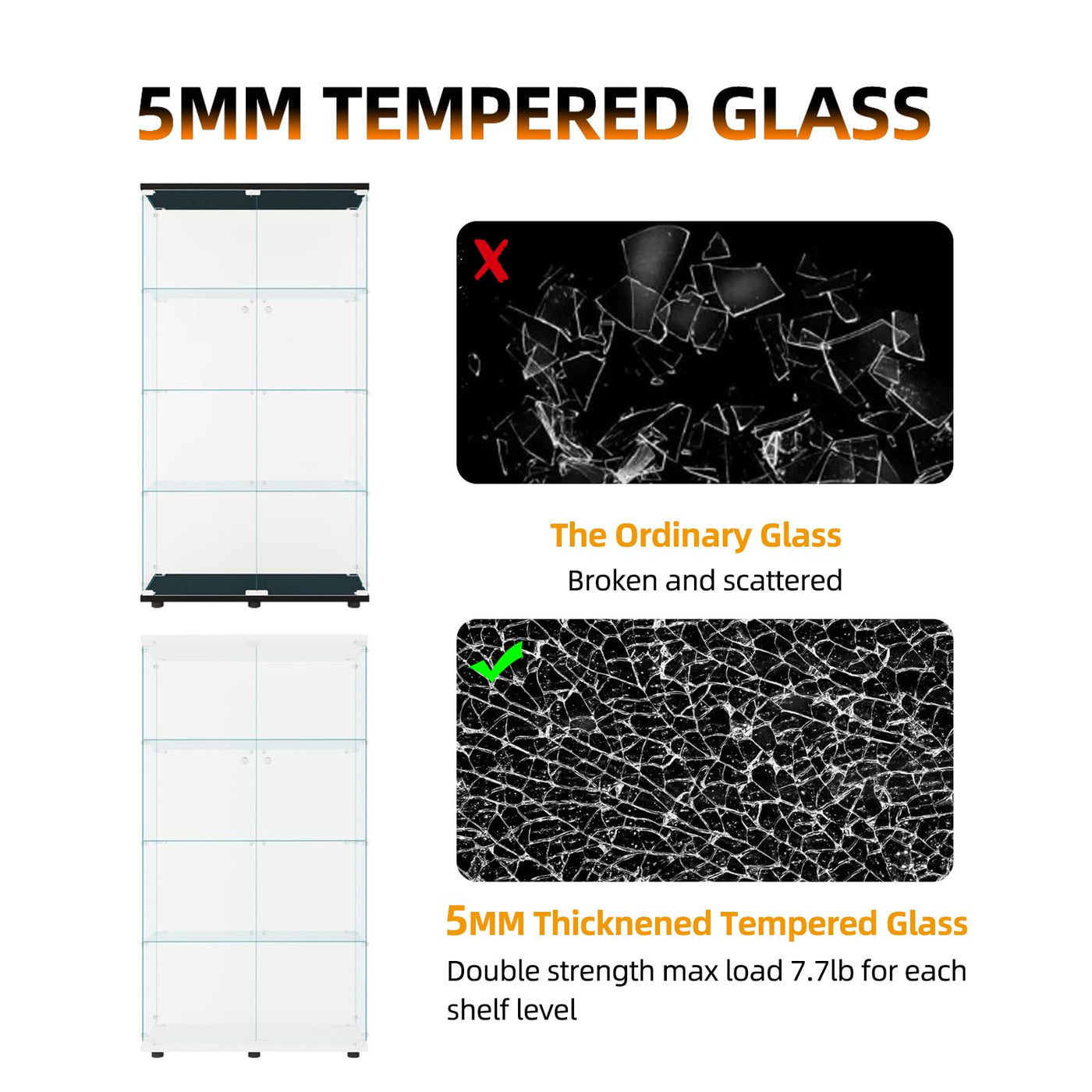 Dolls, photo albums, certificates, holiday memorabilia... whatever you collect or love to see, a display case means you can display your favorite things, but stay away from dust and sticky hands. Beauty4U Glass Display Cabinet has upgraded and simplified the assembly parts for faster and easier installation, allowing customers to easily complete the assembly of the glass bookcase at home. Its beautiful and fashionable shape can also be placed in different places, such as the living room, bedroom, and kitchen. The overall structure design of the glass plates and accessories of the glass curio cabinets make it more beautiful and stable, and a handle is installed on the door of the glass bookshelf to facilitate your switch. The glass cabinet's door also comes with a lock to further protect your collections or prevent accidental movement by children. The accessories also include an anti-dumping device, which prevents the cabinet from tipping over and threatening your personal safety. The glass door cabinet is made of 5mm thick tempered glass and solid wood cover, so you don't have to worry about the pungent smell of the cabinet. And metal mounting parts and door handles make the cabinet more durable.