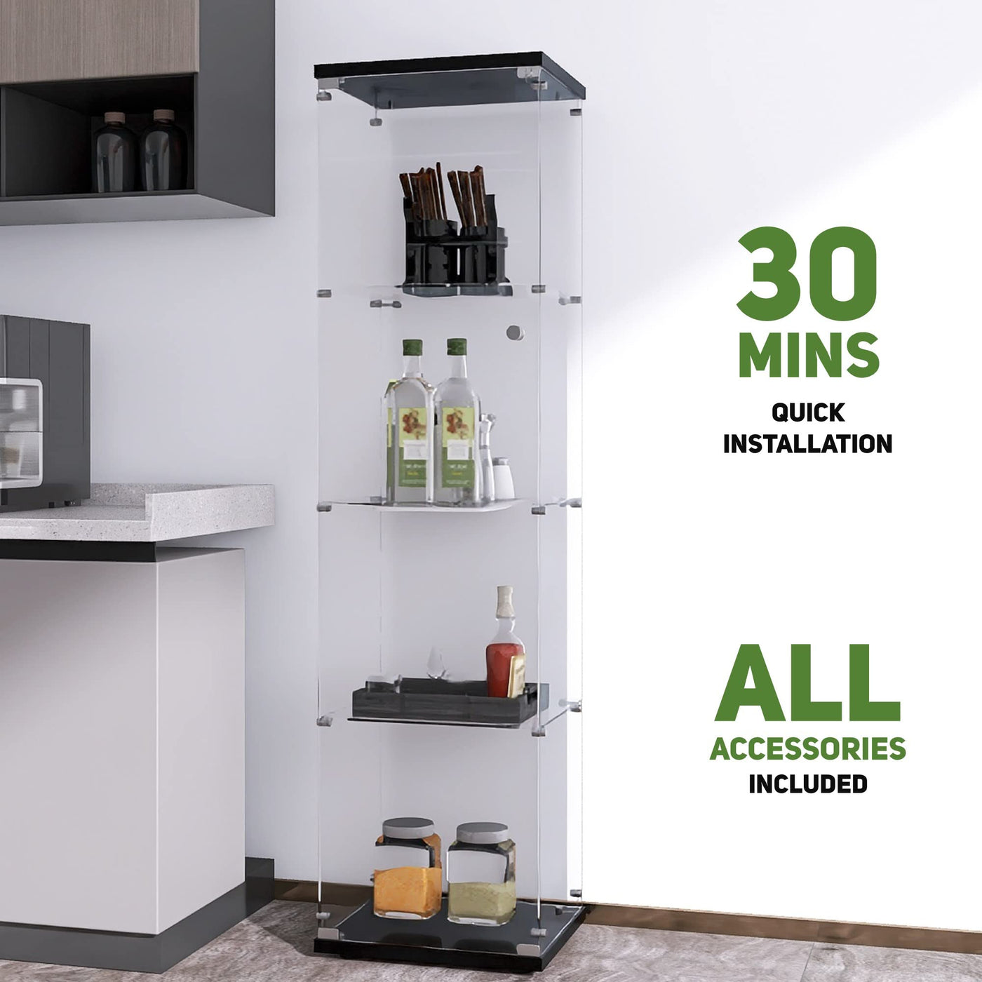 Dolls, photo albums, certificates, holiday memorabilia... whatever you collect or love to see, a display case means you can display your favorite things, but stay away from dust and sticky hands. Beauty4U Glass Display Cabinet has upgraded and simplified the assembly parts for faster and easier installation, allowing customers to easily complete the assembly of the glass bookcase at home. Its beautiful and fashionable shape can also be placed in different places, such as the living room, bedroom, and kitchen. The overall structure design of the glass plates and accessories of the glass curio cabinets make it more beautiful and stable, and a handle is installed on the door of the glass bookshelf to facilitate your switch. The glass cabinet's door also comes with a lock to further protect your collections or prevent accidental movement by children. The accessories also include an anti-dumping device, which prevents the cabinet from tipping over and threatening your personal safety. The glass door cabinet is made of 5mm thick tempered glass and solid wood cover, so you don't have to worry about the pungent smell of the cabinet. And metal mounting parts and door handles make the cabinet more durable.