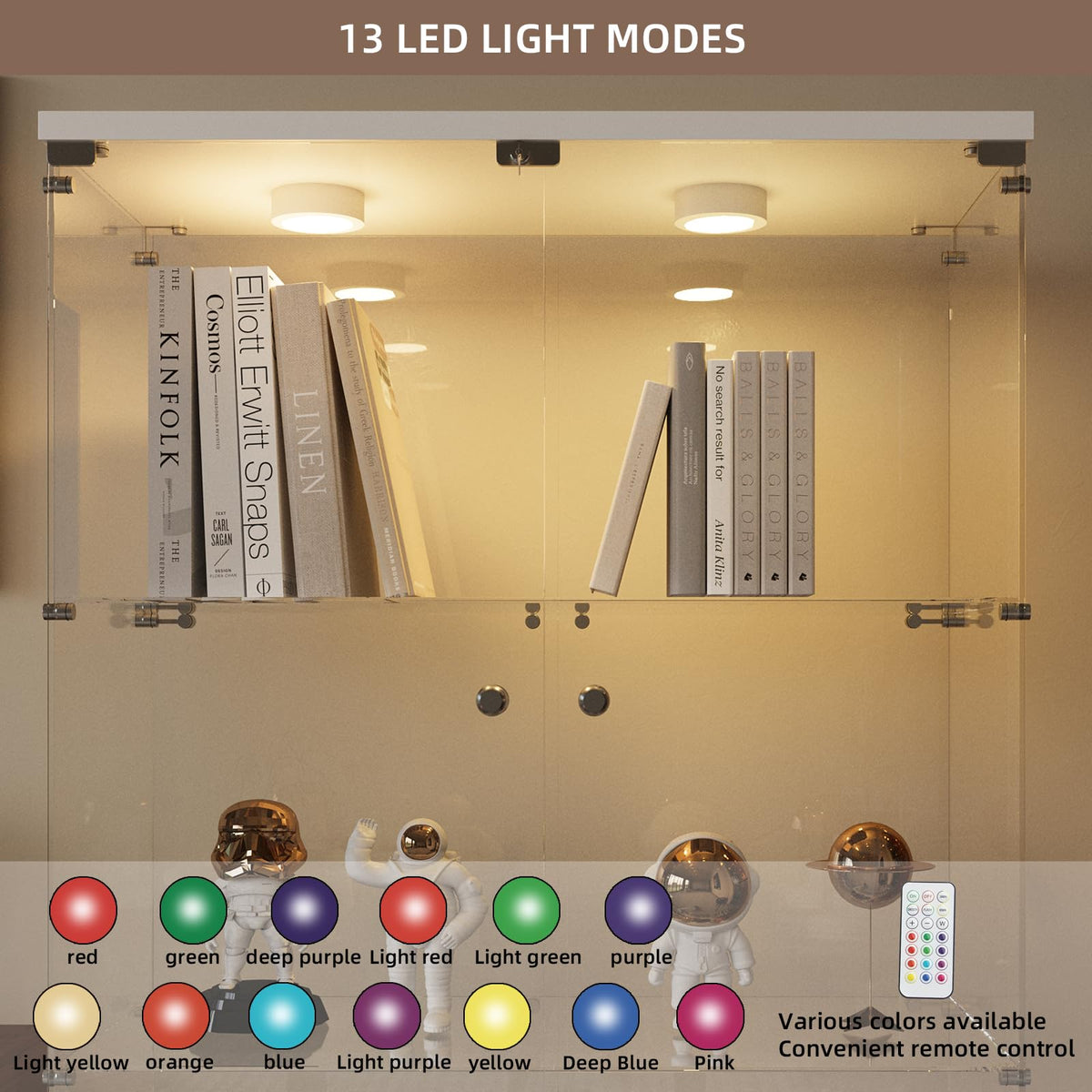 The Beauty4U Glass Display Cabinet is the perfect addition to any living room, bedroom, or office. This double-door, four-shelf cabinet comes with 2 multi-colored lights and a remote control that allows you to adjust the color to your liking. Simply peel off the double-sided tape and attach the lights to the top of the glass cabinet for quick installation. With 13 adjustable colors and the ability to freely adjust the brightness, you can create the perfect ambiance for any occasion. The cabinet also features a 30/60 timer function, allowing you to automatically turn off the lights to save energy. Upgrade your space with this sleek and functional glass display cabinet today
