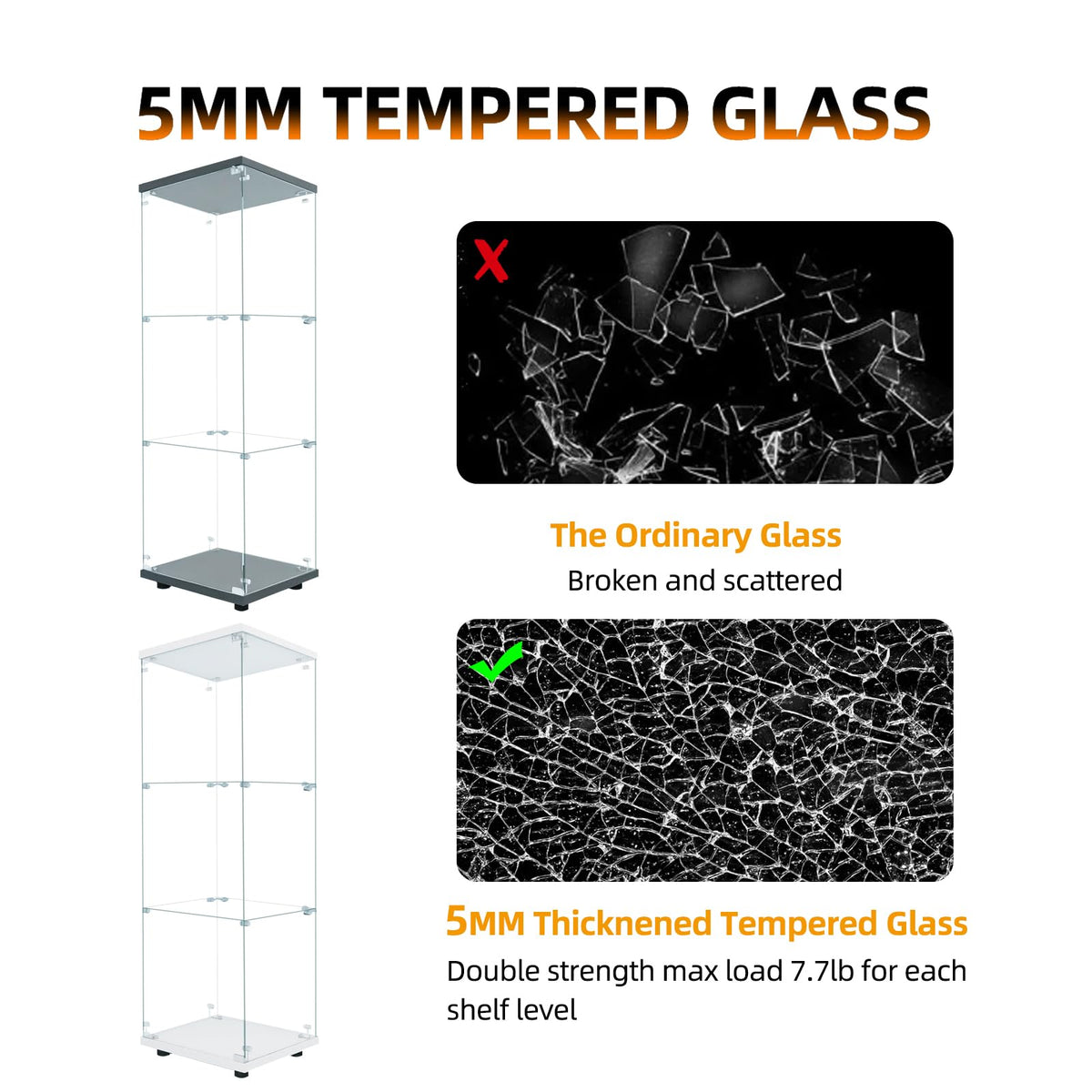 Beauty4U One-Door Glass Display Cabinet, Black Curio Cabinets for Living Room, Bedroom, Office, Collection Display, Quick Installation in 30 Mins, 3 Shelves Black Floor Standing Glass Bookshelf