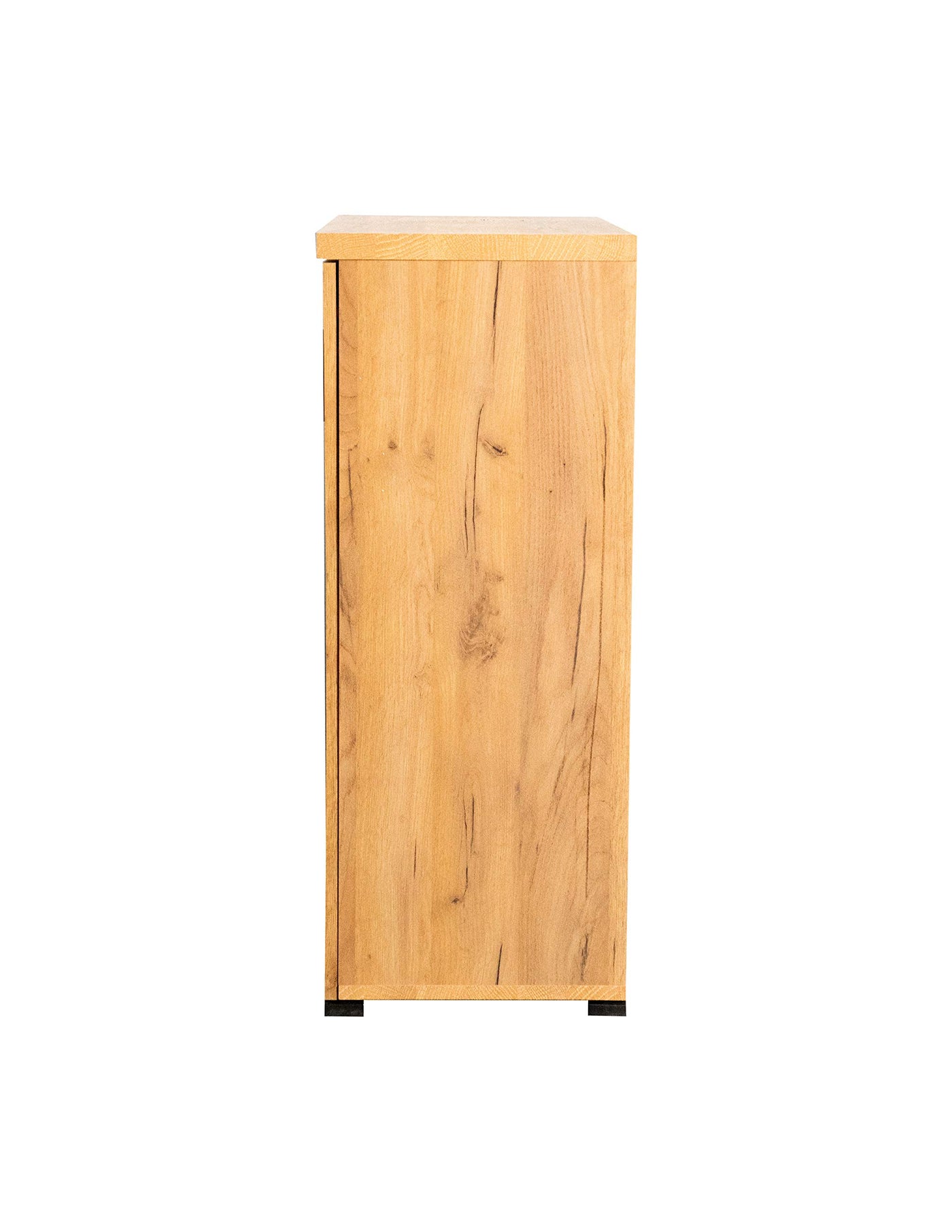 Organize your shoe collection inside this two-door rustic style shoe cabinet. The golden oak finish creates an attractive appeal in entryways and mudrooms. The gunmetal mesh door panels make for a striking contrast. Sleek bar pulls match the block style feet. Use this piece for your shoes or general storage needs.
