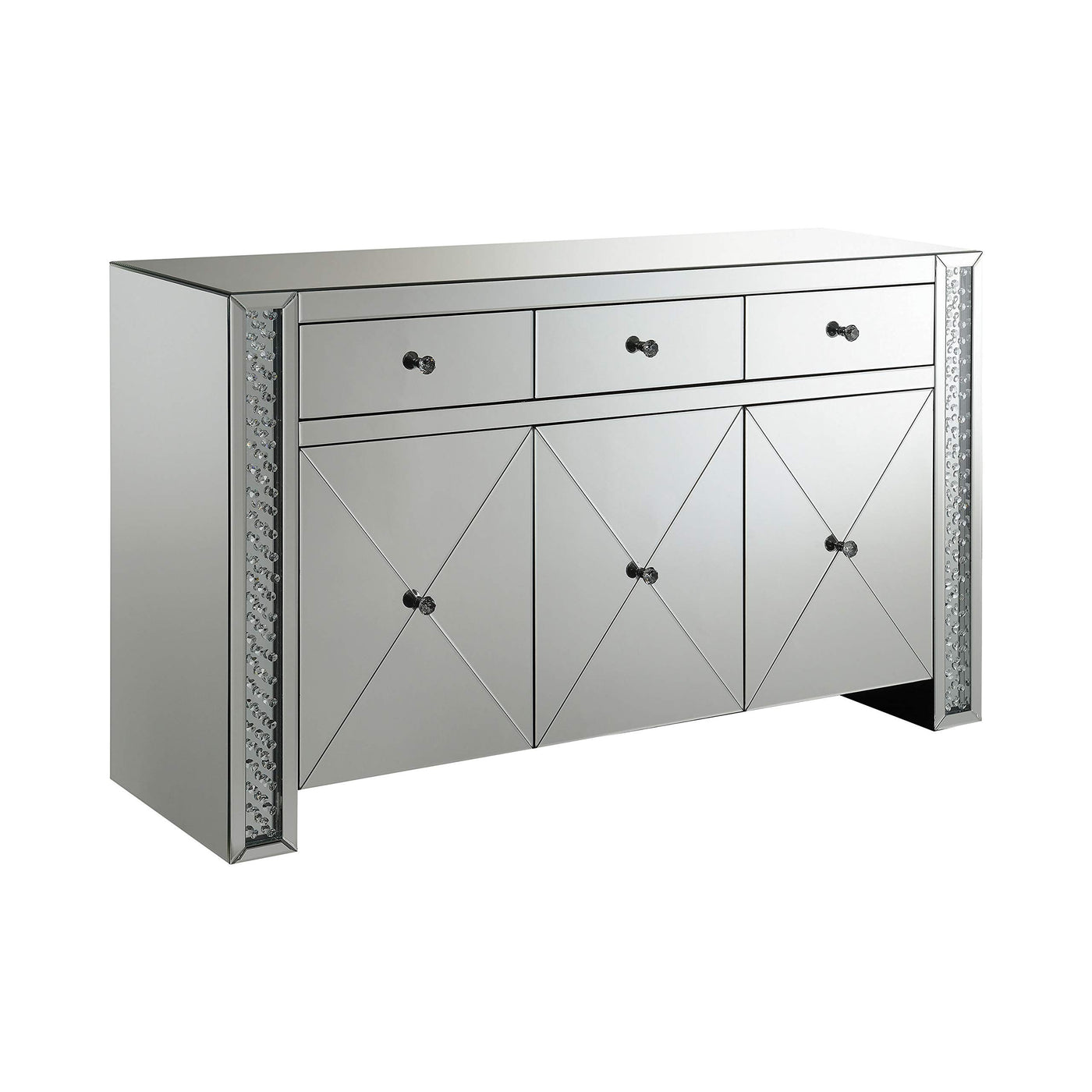 Coaster Home Furnishings Fueyes 3-Drawer Clear Mirror Accent Cabinet, Black/Silver, 59' X 18' (951100)
