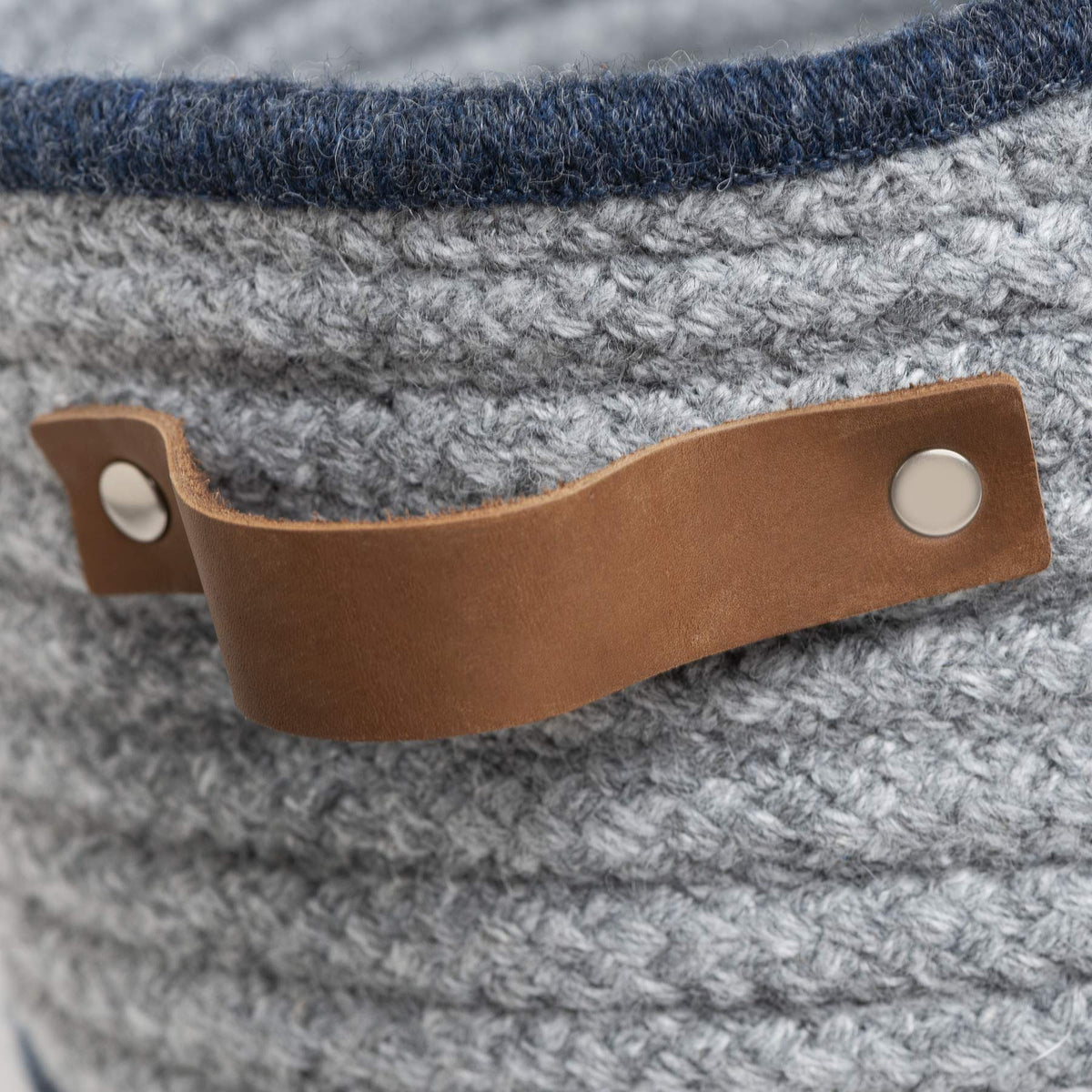Inspired by the past. Designed for the present. Picturesque vintage-inspired design. Great for your home. Ideal for your family room. Perfect for your parlor. Store your pillows. Organize your throw blankets. Neutral tones. Muted accents. Decorative leather handles. Soft, but textured. Free-standing. 100% blended wool. Indoor use only.