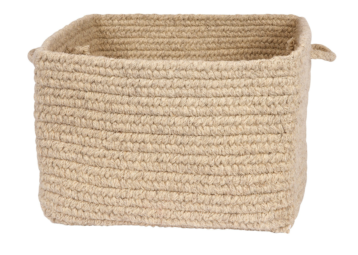 Chunky Natural Wool Square Basket - Light Beige 18"x12".Chunky natural wool braid adds texture and style for the perfect storage accent in any setting.
