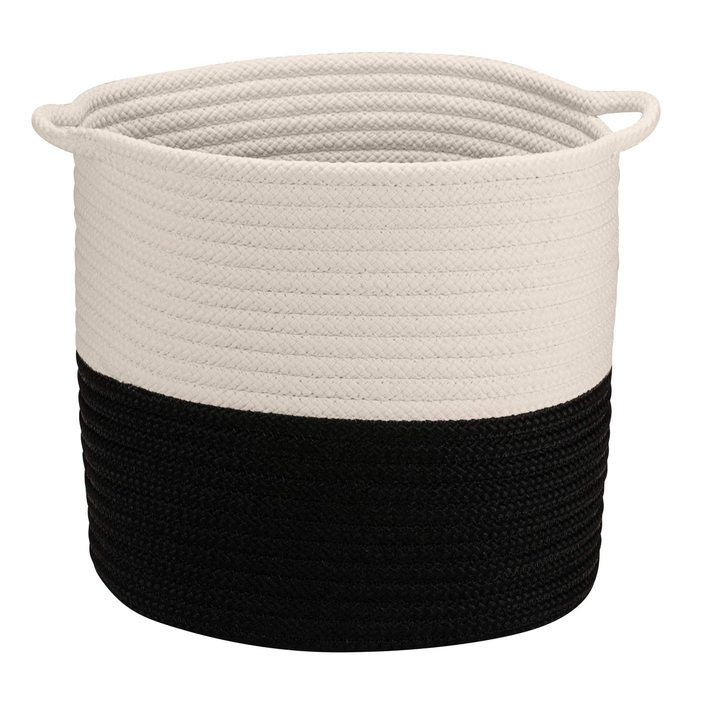 Superbly simple. Timeless two-tone design. Light top with vibrant accent. Thin strap handles for a modern look. Perfect for your aesthetic. Great for your living room. Or bathroom. Or pool house. Store Linens. Ideal for use as a hamper. Decorative Handles. Free standing. 100% Polypropylene. Use Indoor or Outdoor.