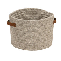 Modern farmhouse with a touch of vintage charm. Neutral colors. Natural wool. Leather handles. Perfect sizes. Soft. Durable. Effortless. Great for magazines. Or blankets. Or toys. Give your living room another dash of sophistication. Add that little something your parlor has been missing. . Undyed. Indoor use only.