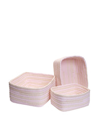 Colonial Mills Ticking Mix Set Of 3 Nesting Baskets, Pink/Khaki, Set Of 3