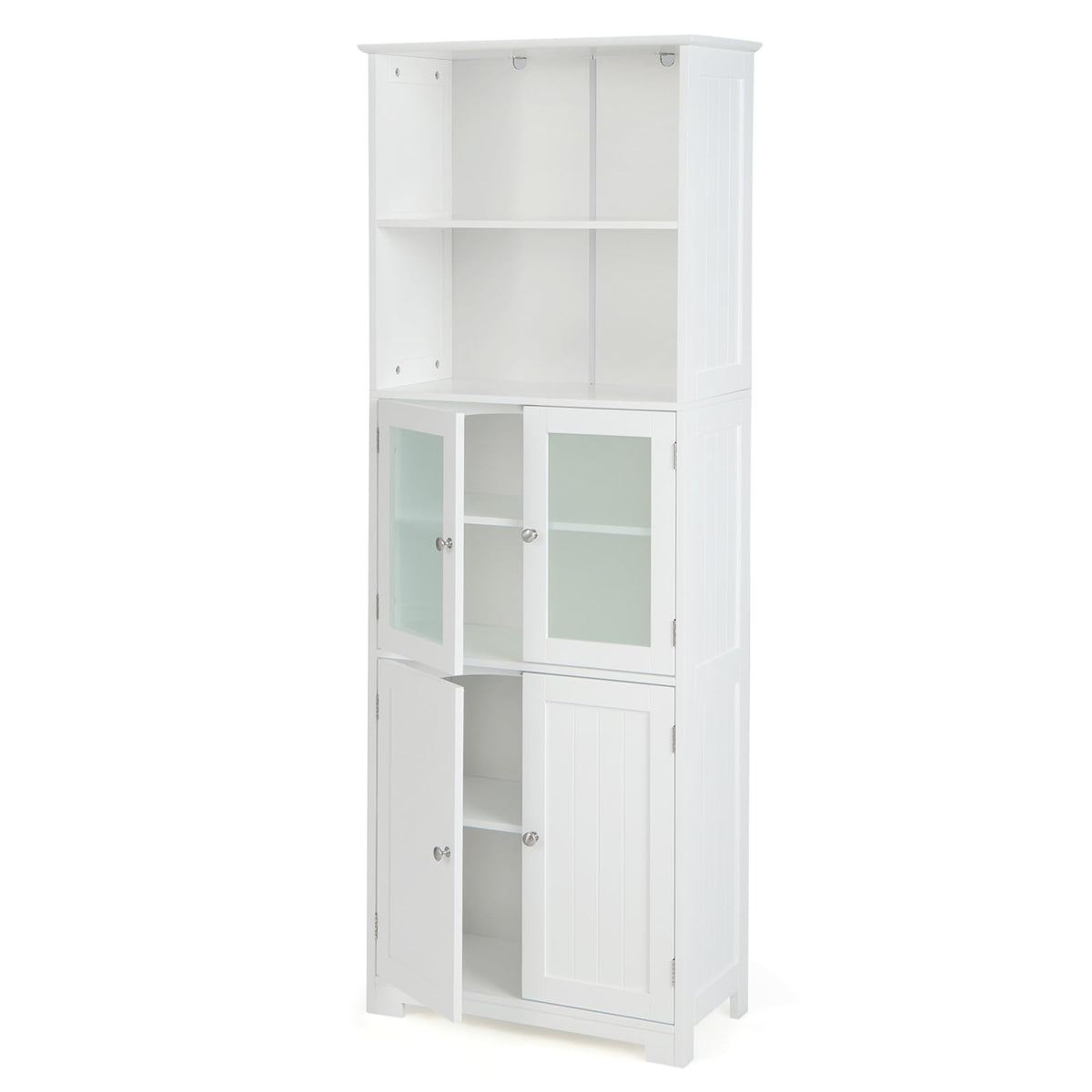 Costway Tall Bathroom Storage Cabinet, Freestanding Kitchen Pantry Cabinet With Glass Doors And Adjustable Shelf, 64” Wooden Linen Floor Cabinet For Bathroom, Living Room, Kitchen (White)