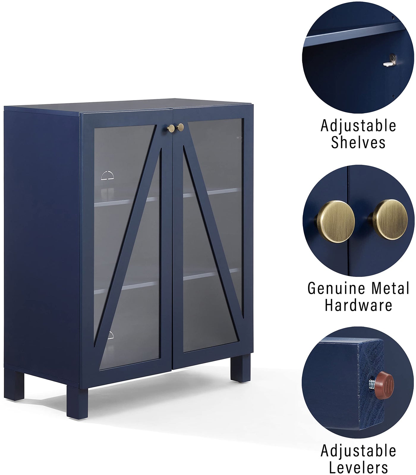 The Cassai Stackable Storage Pantry delivers stylish storage for any room. Featuring two adjustable shelves, this pantry is great for kitchen, bathroom, or entryway organization. Showcasing slanted wood accents, the glass doors of the cabinet offer a perfect opportunity to display books, dishware, and more.