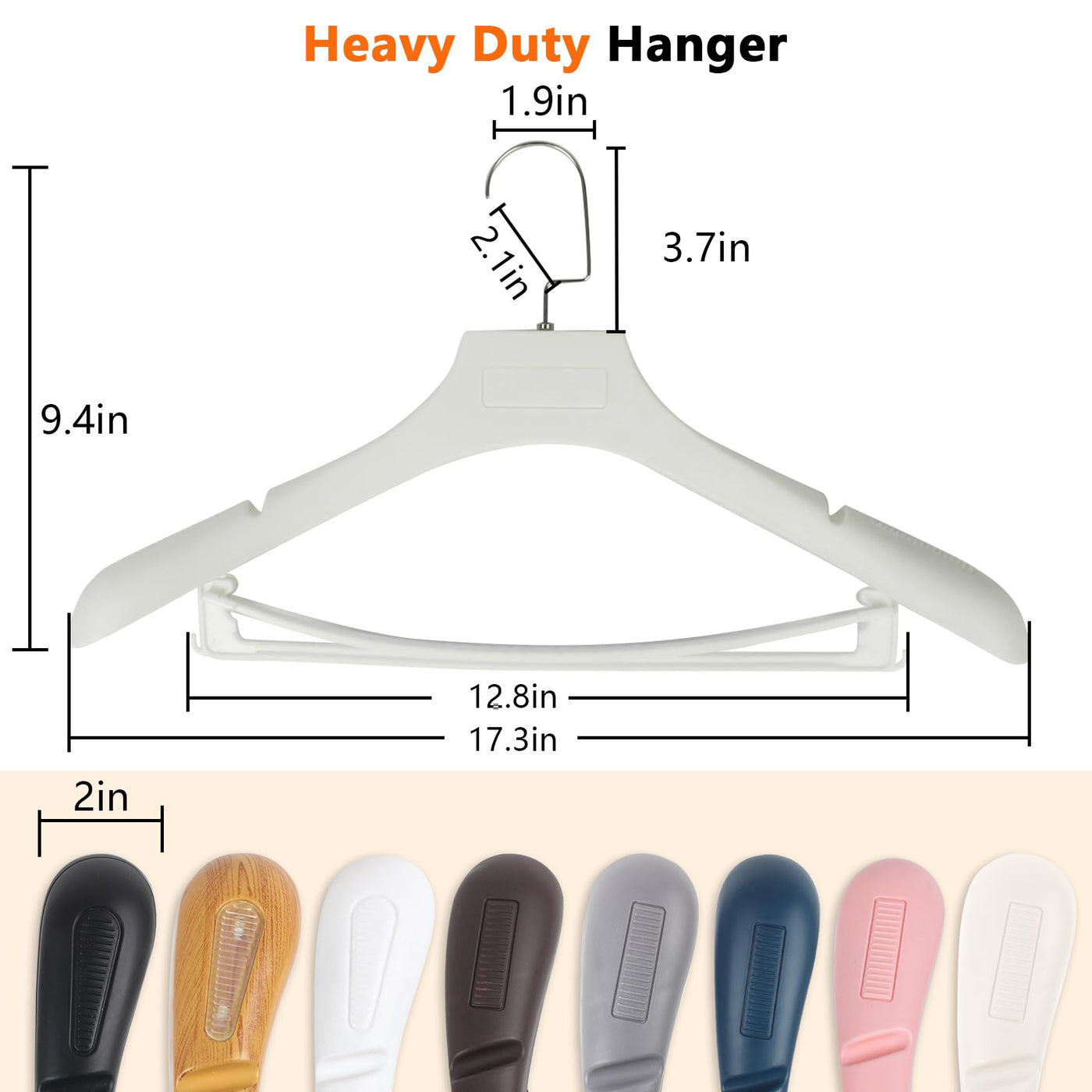 Features Product Name: Suit Hangers With Pant Holder 15 Pack/Coat Hangers/Sweater Hangers/Jacket Hanger Product Material: Plastic Product Size: 17.3'' 9.4'' 2'' Product Weight: About 5Lbs Multiple Quantity Options:Suit Hangers With Pant Bars 10 Pack, Coat Hangers With Pant Bars 15 Pack, Sweater Hangers With Pant Bars 20 Pack, Suit Hangers With Pant Bars 30 Pack, Suit Hangers With Pant Bars 40 Pack, Suit Hangers With Pant Bars 50 Pack Multiple Color Options: Black, White, Grey, Brown, Natural, Ivory White, Blue, Pink Product Scope Of Application: Suit Hangers With Pants Bar Suitable For Suit, Camisole, Jacket, Pants, Sweater, Pants, Heavy Clothes &Amp; More Package Includes: