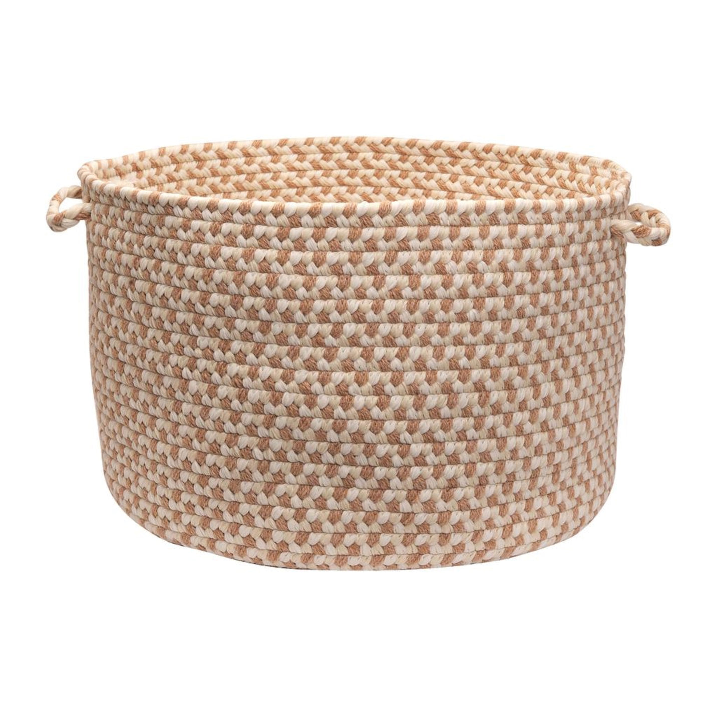 A soft, easy blend of natural tones with just a hint of color create a subtle, elegant braided storage basket that works with any decor. A soft wool blend makes it ideal for bedrooms and living rooms.
