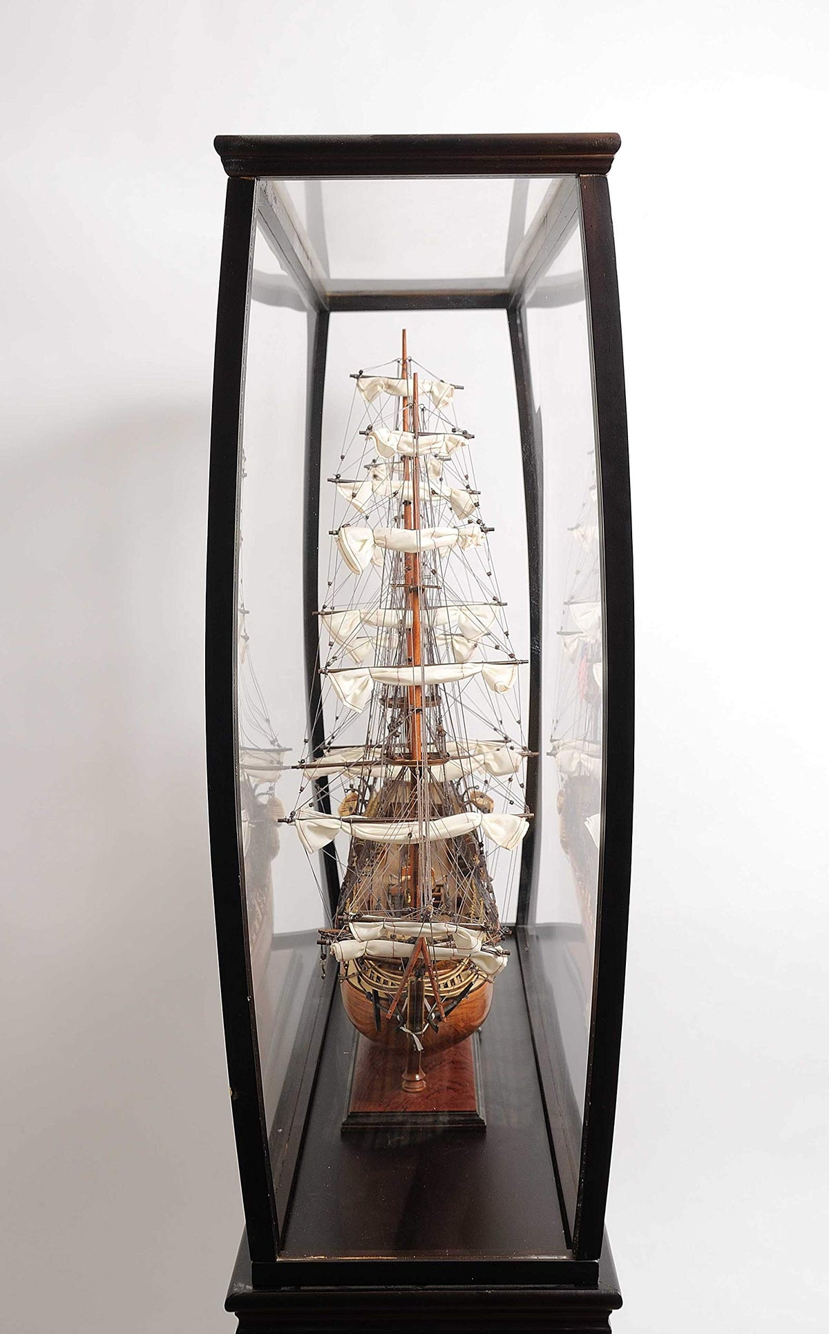 This beautiful display case was made out of hard wood and painted in dark mahogany color. It has distinctive designs that add elegance and beauty when displayed in your home or office. The case comes with plexiglass panels on all sides. It features the curves on the sides of the case which enable it to accommodate models with wide yards. It is used to display all tall ship 36' expert levels such as HMS Victory 37' and USS Constitution 38'. This case is very effective when it comes to preventing dust particles as well as keeping your valuable tall ship looking new and protected at all time. It is a must have for model ship enthusiasts or passionate collectors. This display case is packaged securely with thick foam layers inside a wooden crate and ship safely via trucking company. You can further save money and time when you purchase a tall ship model with the display case. This way we can pack the ship inside the display case and ship the entire package via trucking company. The maximum inside dimension is 38.25L x 13.25W x 36.5H inches.