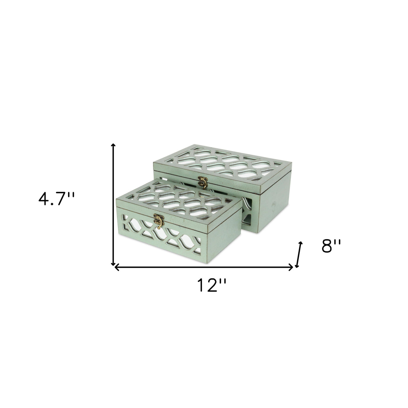 Brighten up your home with this stunning box, making a room as beautiful as a work of art. It is a magnificent piece, with a contemporary style that will enliven your space and a vibrant color that will present some variety in your rooms. This box is a high quality piece, expertly made from high quality materials. A completely handmade and handcrafted design. You want your boxes to last, and that's exactly what you get with this one. It is part of the Aden collection and its unique design will add an attractive modern touch to the atmosphere of your home. This piece combines metal, mirrored and wooden materials. As for the measurements, they are 4.75 for height, 12 for width, and 8 for depth, and it weighs 4.75 pounds. It comes as a nested set, of 2, big and small. It features a composite wood body with a blue exterior. Incorporate into your interior to achieve the perfect look.