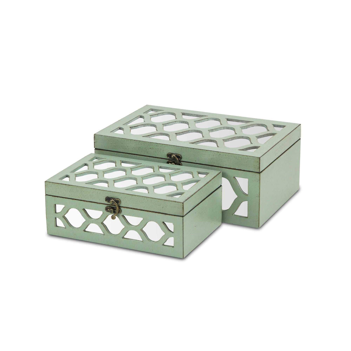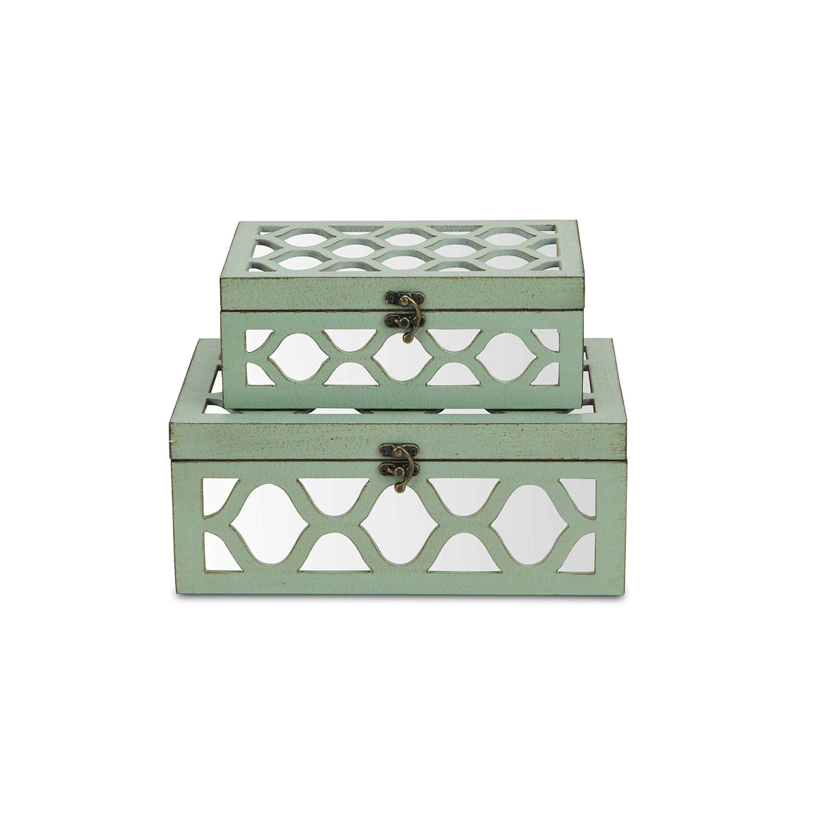 HomeRoots Set Of 2 Blue Wooden Boxes With Overlayed Mirror Panels