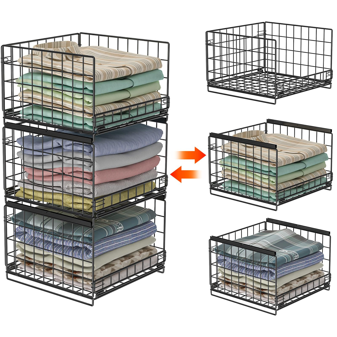 Hongtamoya 3 Tier Sliding Closet Organizers And Drawer Storage Shelves, Stackable Storage Bins For Jean Pants Sweaters, Storage