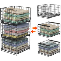 Hongtamoya 3 Tier Sliding Closet Organizers And Drawer Storage Shelves, Stackable Storage Bins For Jean Pants Sweaters, Storage Container For Wardrobe Cupboard Kitchen Bathroom Office, Black