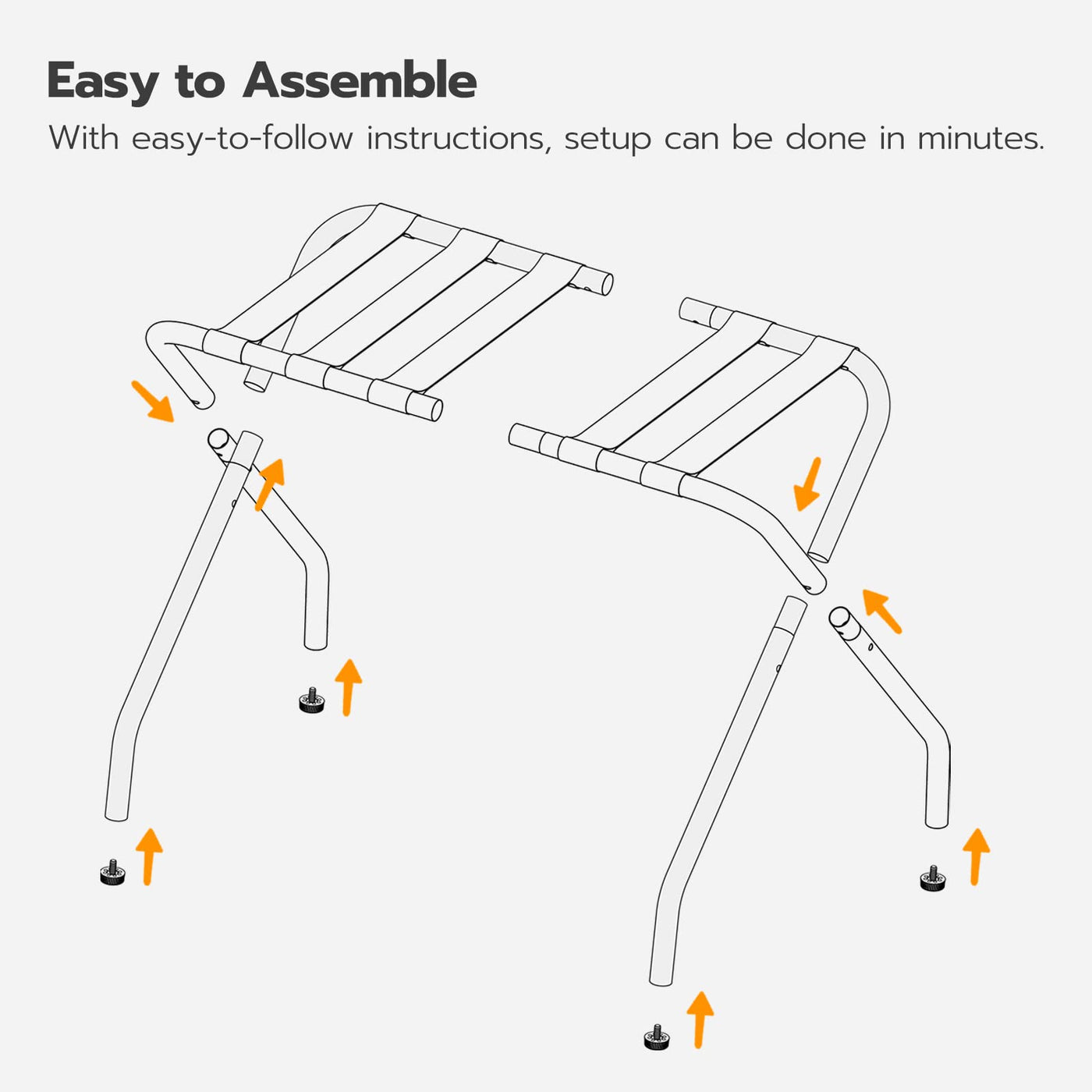 Q: Is the luggage rack easy to assemble?A: Yes, the HOOBRO Luggage Rack comes with easy-to-follow instructions and can be set up in just a few minutes, allowing you to quickly prepare for guests.