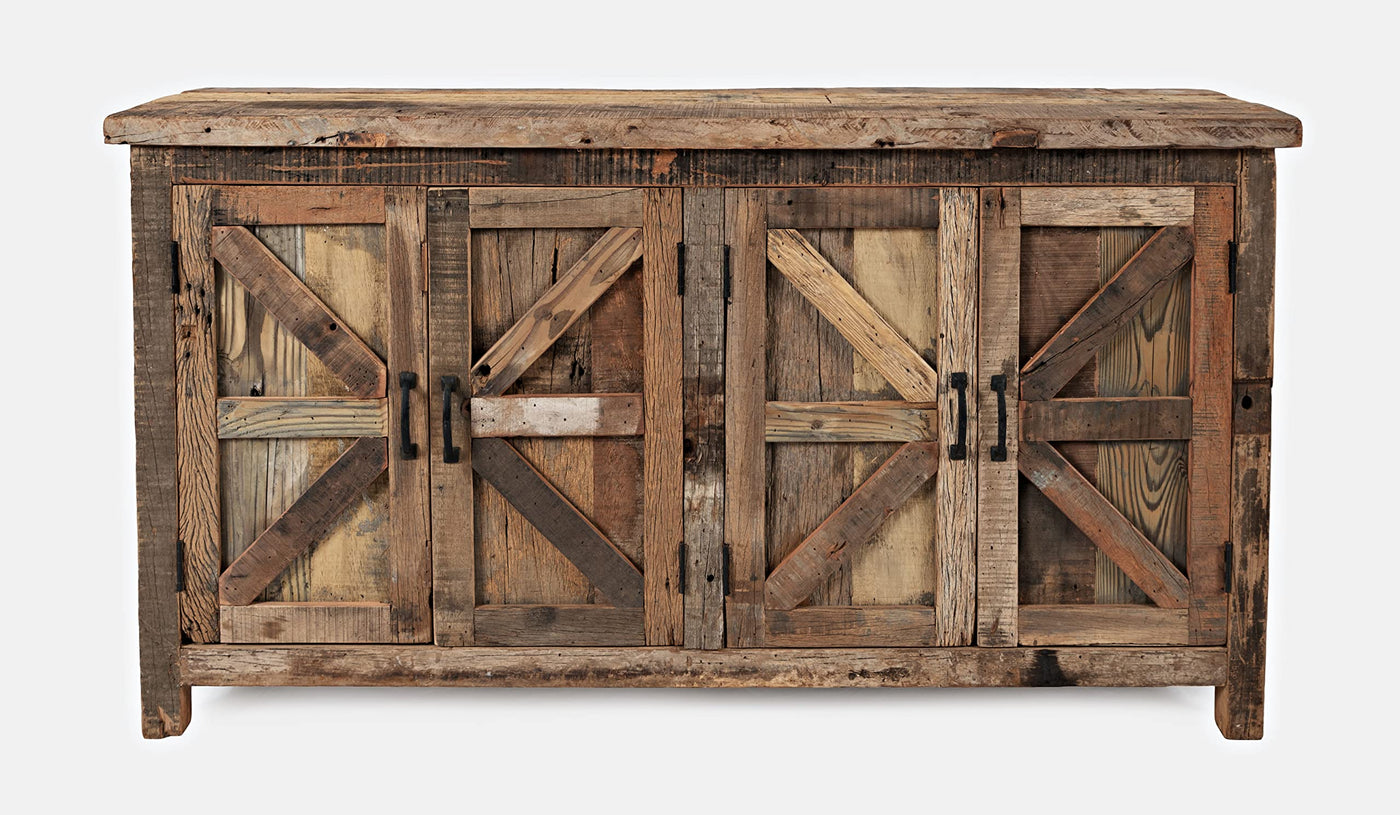 Eden Prairie is the pinnacle of reclaimed hardwood furniture, sourced from around the globe and combined to make beautiful handcrafted accents that are truly unique in every sense of the word. This 4 Door Accent Cabinet arrives to your home fully assembled and ready to bring functional storage with style to any room in your home. No two cabinets are alike as every piece is made from unique mixed reclaimed wood. Measuring 60'' wide, there are four barn style doors on the front with magnetic latches and solid iron handles, and a spacious shelf with cable management holes in the back. The deeply distressed wood brings character and warmth into your home, making every single cabinet as unique as you are.