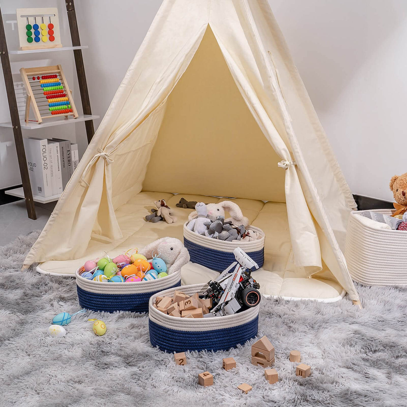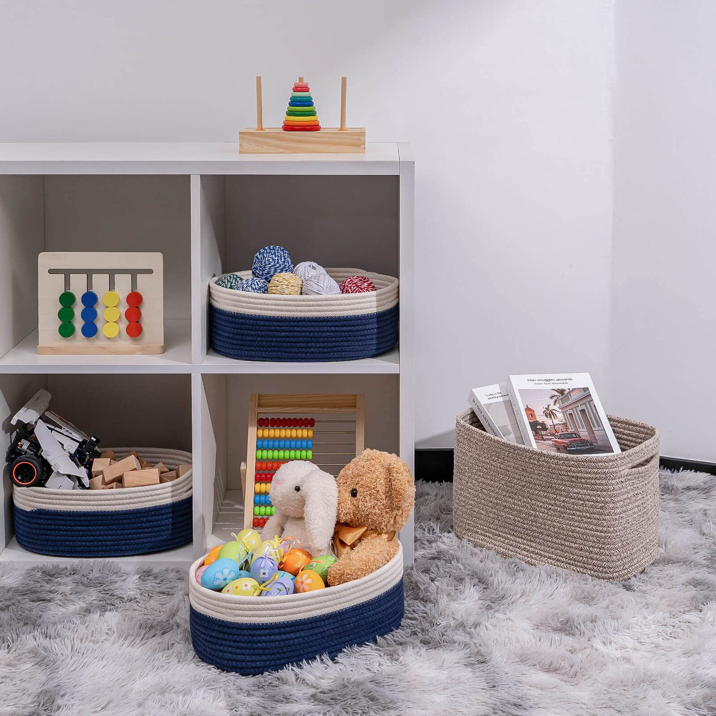 Kriitools Off White&Navy Shelf Basket To Store And Organize Household Items/Baskets&Bins For Daily Storage &Organizing/Woven Rop