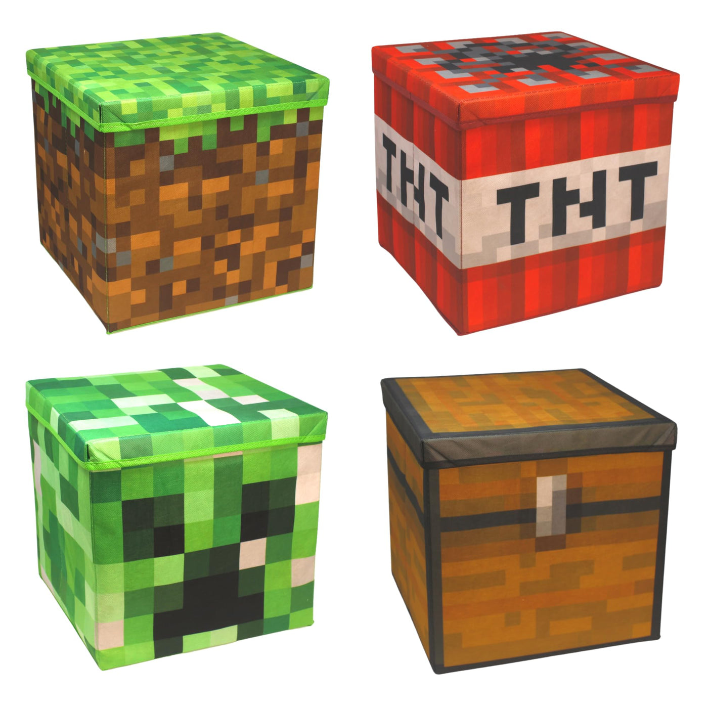Large 14 X 14 Fabric Pixelated Box - 4 Pack | Birthday Party Supplies | Storage, Decorations & Props, Big Birthday Box | Storage