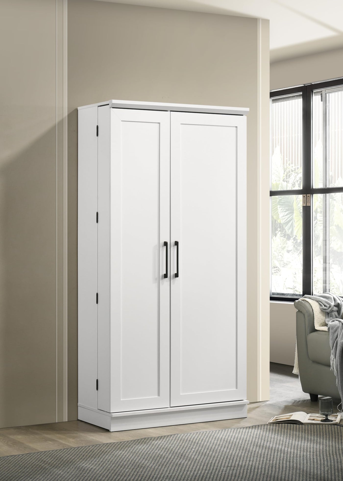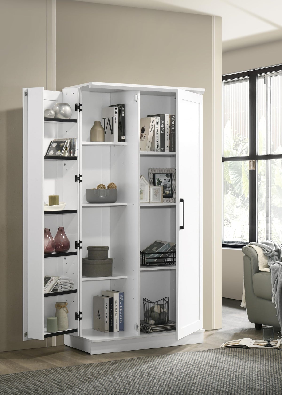 Elevate your living experience with the Lincoln Storage Cabinet – where ingenious design meets timeless elegance. Experience the joy of tailored organization, the luxury of adjustable shelves, and the flexibility of swing-out storage, all crowned with the beauty of framed panel doors and a pristine white finish. The Lincoln Storage Cabinet unit is ingeniously engineered to offer convenience from every angle. Assemble the swing-out storage on either the left or right side, catering to your room layout and personal preference, ensuring seamless integration into your space. The enclosed back panel isn't just a feature – it's a game-changer. With cord access built in, you can effortlessly manage electronic devices and keep your living space clutter-free and impeccable. Whether your décor is modern chic or classically charming, this cabinet blends seamlessly, becoming an integral part of your design scheme.