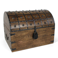 Q: How should I care for the wooden chest to maintain its quality?A: To maintain the quality of your wooden treasure chest, keep it in a dry environment, avoid exposure to excessive moisture, and clean it with a soft, dry cloth. Avoid using harsh chemicals that could damage the finish.