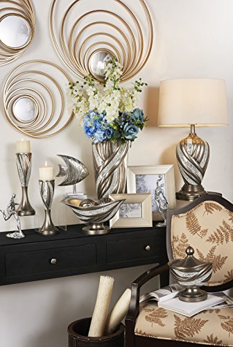 OK Lighting home decor and lighting combines elegant designs and functionality. Both decorative and functional, the elegant container makes a stunning addition to a vanity or nightstand. This decorative container features brushed, textured silver, and interlacing mosaic mirror tiles with metallic silver stripes of smooth curves. Display it next to the other matching decor pieces in the collection for a pleasant and appealing look.