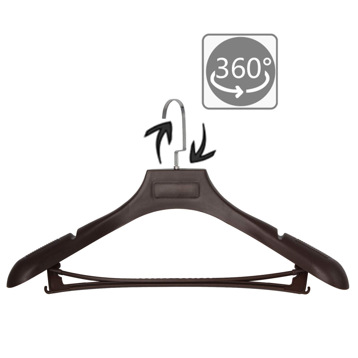 Package:Suit Hangers - Pack Of 15, Size:Coat Hangers Width: 17.7'' , High:10.2'' Material:Pp Plastic Plastic Extra Wide Suit Hangers With Notched Shoulders &Amp; Swivel Hooks, Brown, The Notched Extra Wide Shoulders Prevent Clothes From Slipping. Swivel Hooks Easy To Use And Can Support Most Suits, Shirts, Dresses And So On. Below The Shoulder Is A Pants Rack That Can Be Used To Hang Pants, Scarves, Ties, Etc.The Extra Mini Hooks Can Hold Small Articles Like Tie. Suitable For All Kinds Of Heavy Coats, Shirts And So On. Enjoy Cleaning, San Rong Providing High Quality Cleaning Products For Everyone, To Make Cleaning Becomes Effortless &Amp; More Comfortable, Our Mission Is To ''Let The Housework Easier, Make The World Cleaner''.