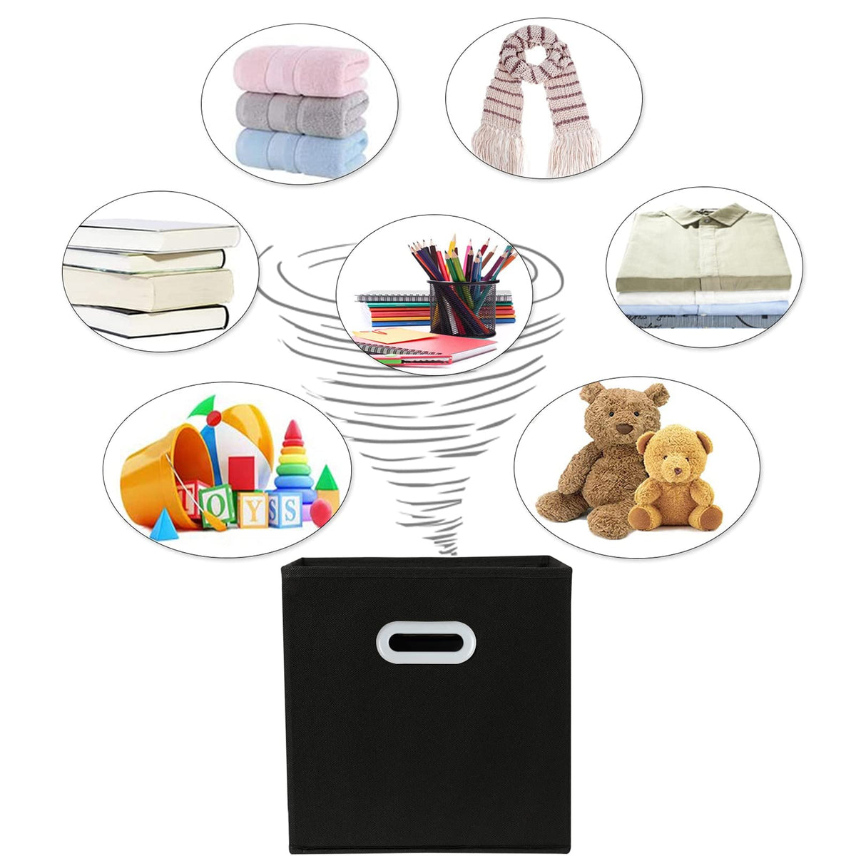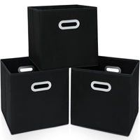 Foldable Storage Bins Cubes Boxes Containers Baskets Quickly Organize Clothing, Accessories, And More Neatly For Your Room. Our Storage Cube Fits In Many Of The Most Popular Styles. The Collapsible Storage Basket Bins Are The Right Size For Closet Shelves And Easy Storage For Everyone In Your Home. Specifications - Color: Black - Material: Non-Woven Fabric - Size: 11''X11''X11'' - Quantity: 3 Pcs Package Include 3 * Foldable Fabric Storage Bins Features ? This Storage Box Comes With An Open Design For Easy Access. These Cube Organizer Bins Fold Down To Store Flat, So You Can Change Them Out Each Season For A New Pop Of Color. ? This Cubby Storage Organizer Comes With Durable Handles On Both The Front And Backside, Making The Fabric Cubes Bins Convenient For You To Pull Out The Storage Bins From The Shelves. ? Each Cube Storage Bin Basket Provides A Collapsible Design. Simply Fold The Cube Bins Down Flat For Space-Saving Storage When Not In Use Or When Needing To Transport. ? The Drawer Folds Flat When Not In Use Which Helps You To Use It More Conveniently With No Worry. Good For Folding And Soft, Big Space To Collect Lots Clothes. Space Saving Your Cabinet. ? Our Fabric Storage Bins Are Elegant, These Collapsable Storage Cube Bins Are Housewarming Gifts To Good Friends, Brothers, Sisters, Or For Students Living In Dorms With Limited Space. ? These 11-Inch Storage Cube Bins Are Perfect For Organizing And Cutting Down On Clutter, Which Can Be Used To Store Clothing, Underwear, Socks, Sweatshirts, Toys, Crafts, And So On.