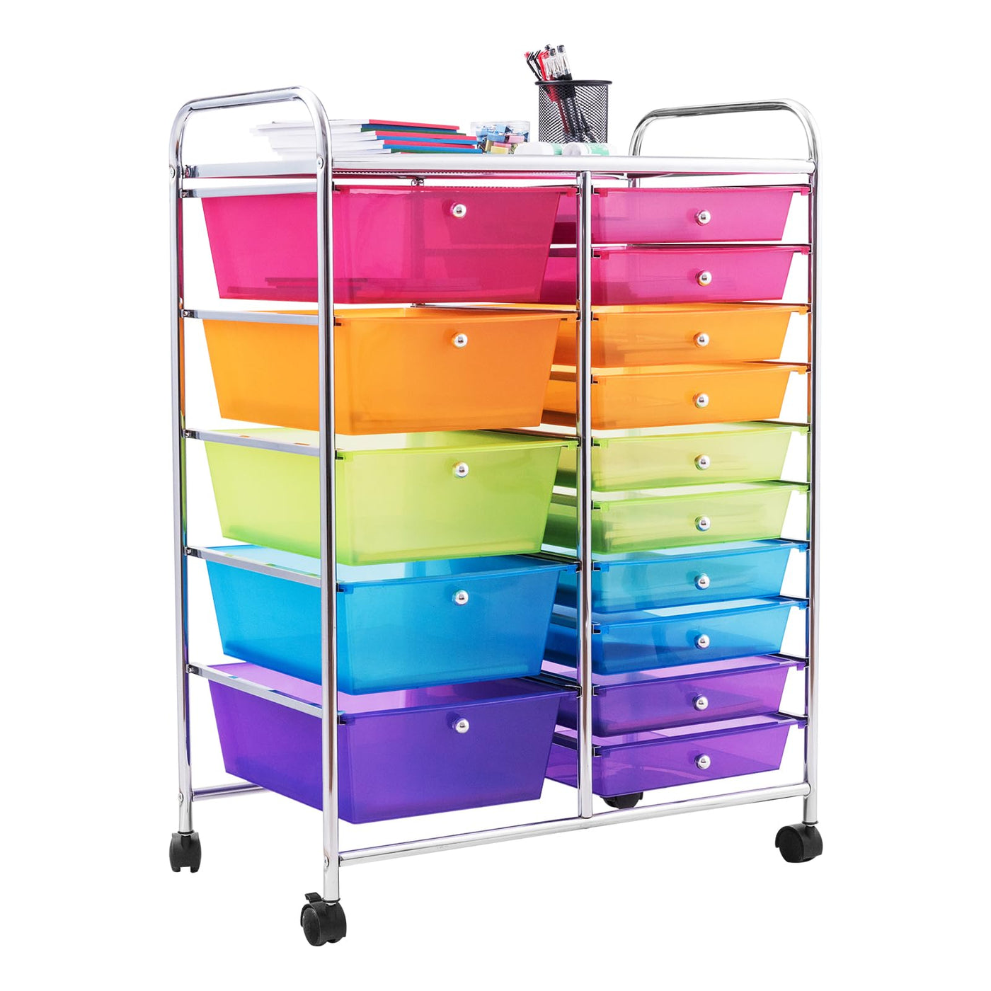 Silkydry 15 Drawers Rolling Storage Cart, Craft Cart Organizer With Lockable Wheels For Tools, Arts, Scrapbook, Papers, Multipurpose Utility Cart For Home Office School (Rainbow)