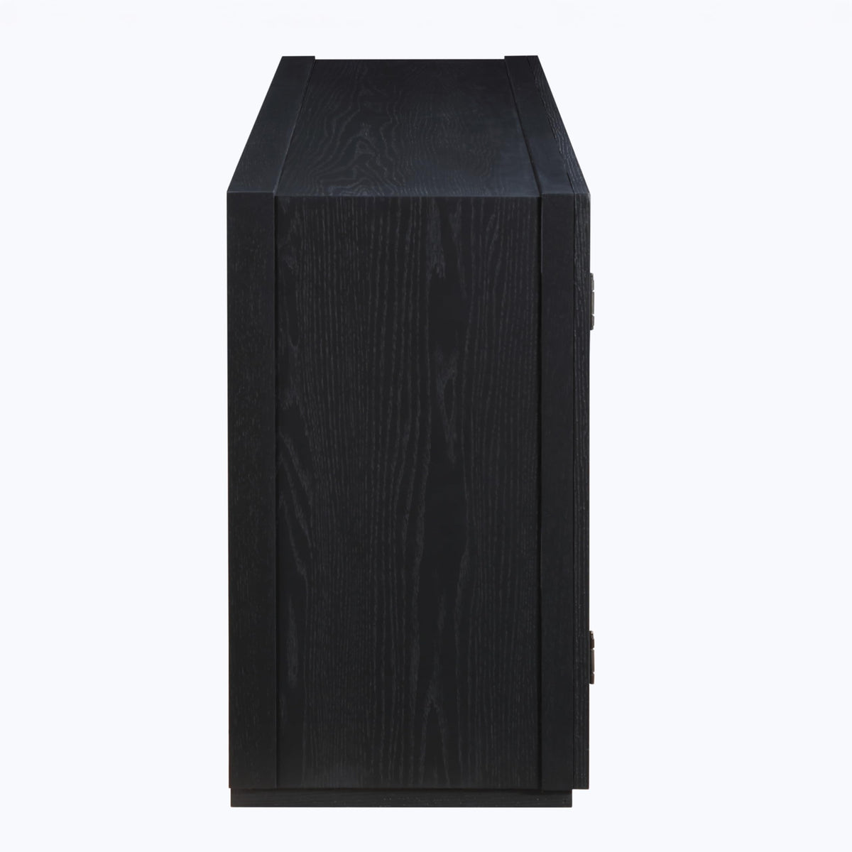 A masterpiece of versatility and style, the Magnolia Server reveals a world of display possibilities behind beautiful Cathedral glass doors. Hand-stained in a striking ebony finish with a contrasting weathered sand interior, this cabinet features adjustable shelves and hidden cable management for a seamless transition from a dining room sideboard, to a living room entertainment center, or even a stunning hallway console The clean lines and modern style of the Magnolia Server adds elegance, sophistication and storage to any room in a home.