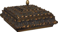 Hardwood based | Carved leaves | Classic styles, brown and gold finish | Centerpiece for any boudoir countertop | Size 12 by 6-1/2 by 12-inch; 7-3/4-pound