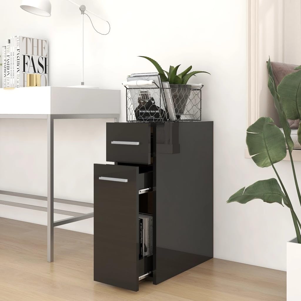 This apothecary cabinet features large storage space and keeps your house clean and well-organised! This storage cabinet is stable and sturdy. The cabinet provides ample storage space for keeping your essentials well organised and within reach. Additionally, it is easy to clean with a damp cloth.Colour: High gloss blackMaterial: Engineered woodDimensions: 20 x 45.5 x 60 cm (L x W x H)Assembly required: Yes :In order to prevent overturning, this product must be used with the wall attachment device providedPlease note: Screw(s) and plug(s) for inside the wall are not included. Seek and use screw(s) and plug(s) suitable for your walls. If you are uncertain, seek professional advice. Read and follow each step of the instruction carefully.