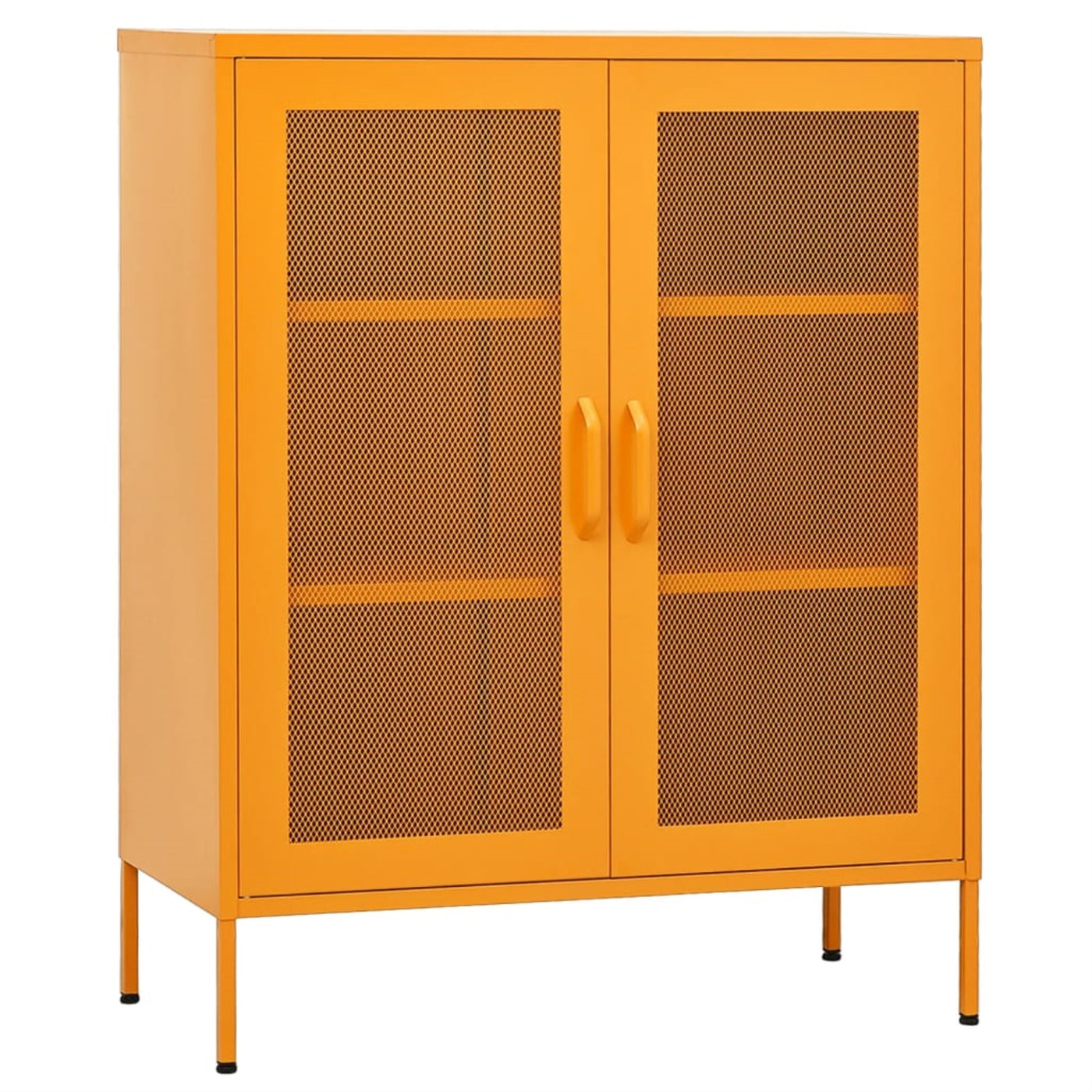 This storage cabinet with practical design is a real eye-catcher for your home decor. This side cabinet, featuring a steel construction, is sturdy and durable. There are levellers on the bottom to adjust the height according to your needs. The sideboard has 2 mesh doors with adjustable shelves inside to suit different sized items, such as books, magazines, and other personal essentials.