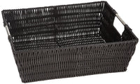 Q: What materials is the Whitmor Rattique Shelf Tote made from?A: The tote features a sturdy construction, designed for durability, with built-in stainless steel handles for easy transport.