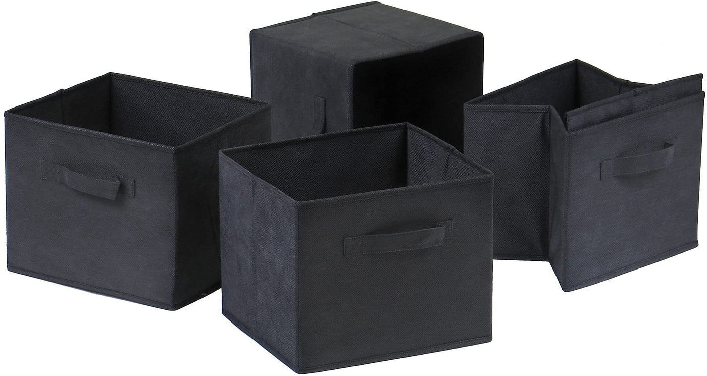 Winsome Capri foldable black fabric baskets organize the items in systematic manner and are convenient to use.Set can be stored easily as it is foldable and are great for holding files, clothing or art projects and is sold as set of 4.