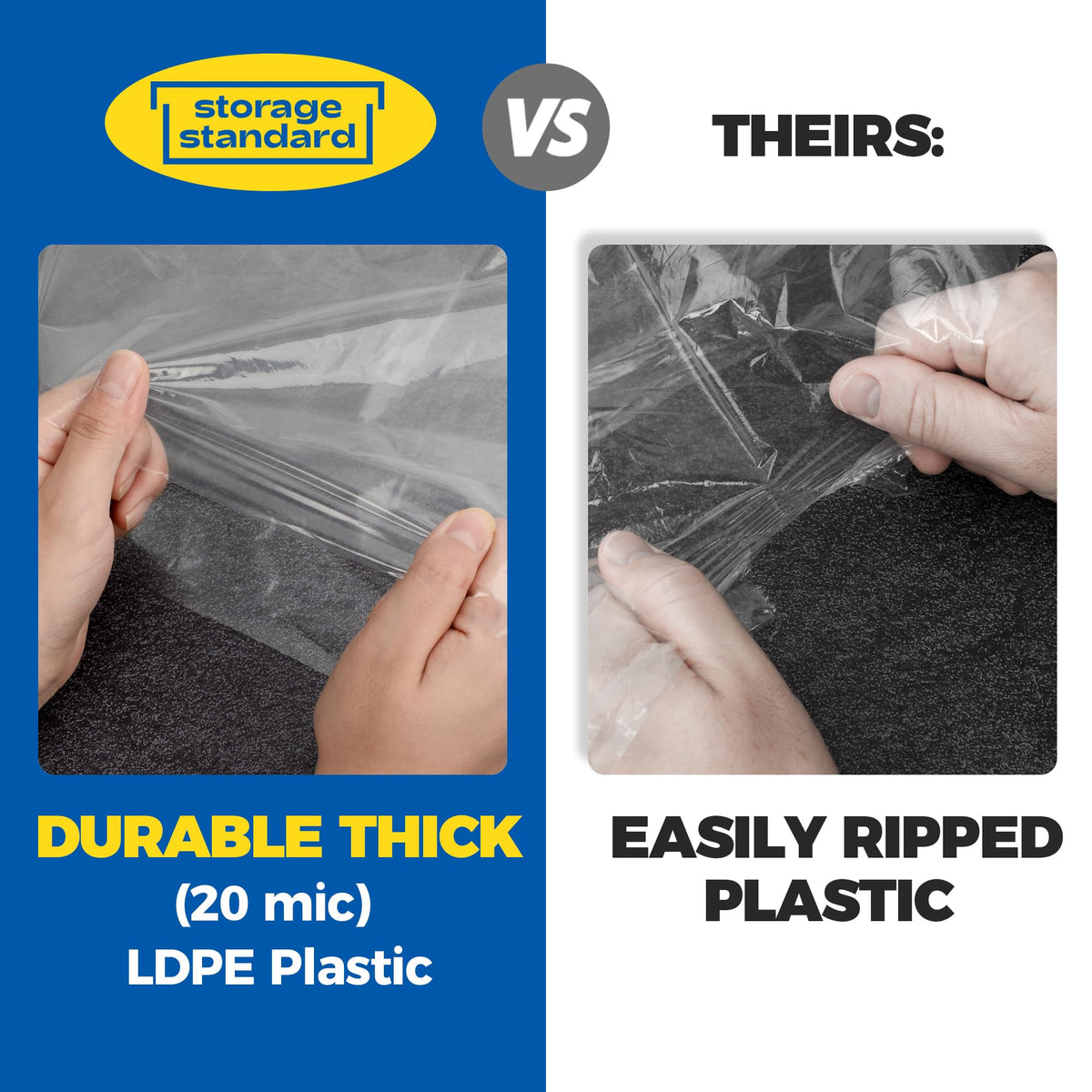 Set The Bar High With Reliable Storage Solutions From Storage Standard! Discover Our Plastic Garment Covers Garment Bags For Storage That You Can Rely On Keep Freshly Cleaned Clothes Stain-Free And Wrinkle-Free By Storing Them In Our Clear Plastic Dry Cleaning Bags! Our Poly Garment Bags Roll Plastic Dress Bags Are Designed For Suits, Uniforms, Coats, Shirts, Jackets, Cardigans, Sweaters, Hoodies, Pants, And Other Clothes. Whether You'Re Storing Clothes In Your Shop For Pickup Or Delivering Them To Your Customer'S Home, Make Sure They'Ll Arrive In Pristine Condition With Our Garment Bag Roll. Our Transparent Garment Bags Protect Garments From Dust And Dirt, While Ensuring They Won'T Get Wrinkled While In Transit. Made From Premium Ldpe Material, Our Clear Plastic Suit Bags Have A Durable Construction That Won'T Easily Rip Or Tear. Our Dry Cleaner Bags Plastic Clear Roll'S Material Has The Right Thickness To Protect Clothes While Staying Lightweight. With 40 Inches Length, Our Clear Garment Bags Can Fit Any Garments Such As Cardigans, Sweaters, Jackets, Hoodies, Suits, Uniforms, Shirts, Pants, And So Much More. Our Clothes Plastic Cover Is A Practical Addition To Your Home Supplies And Business Supplies. Be It In Your Closet Or Your Clothing Store, Keep Clothes Looking Brand New By Covering Them With Our Convenient Clear Plastic Laundry Bags And Dry Cleaning Bags For Dryer! Click Add To Cart Now And Enjoy Premium Suit Bags For Closet Storage. These Clear Garment Bags For Hanging Clothes Will Assist Greatly With Your Storage And Organization Needs.