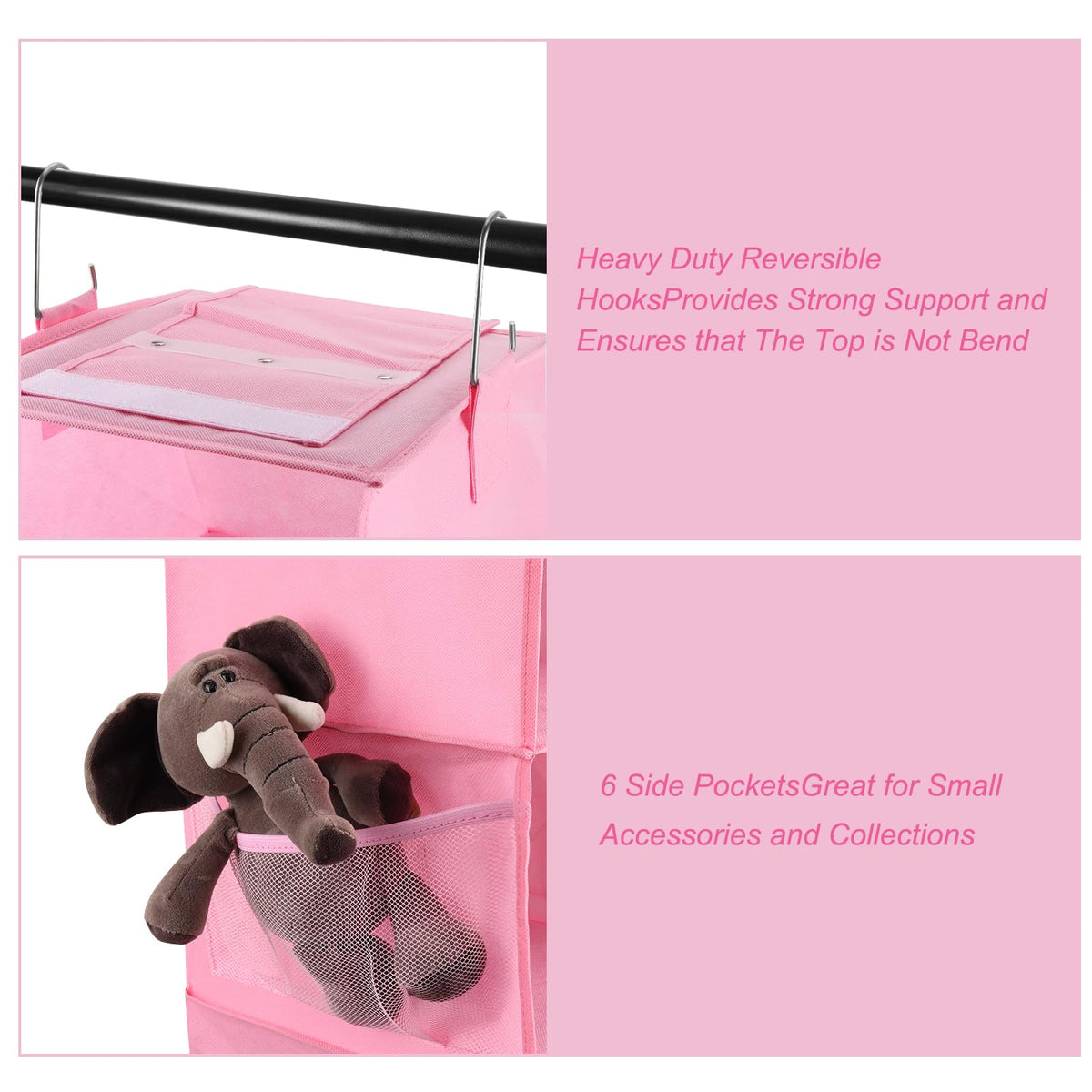 Fixwal 6-Shelf Weekly Clothes Organizer For Kids, Kids Daily Shelf Hanging Closet Organizer With 6 Side Pockets, Days Of The Week Hanging Storage Shelves (Pink) [Size] 51.2''*11.8''*11.8'' [Package] 6-Shelf Weekly Hanging Closet Organizer X1 Colorful Weekly Labels X 2 Triangle Hook X 2