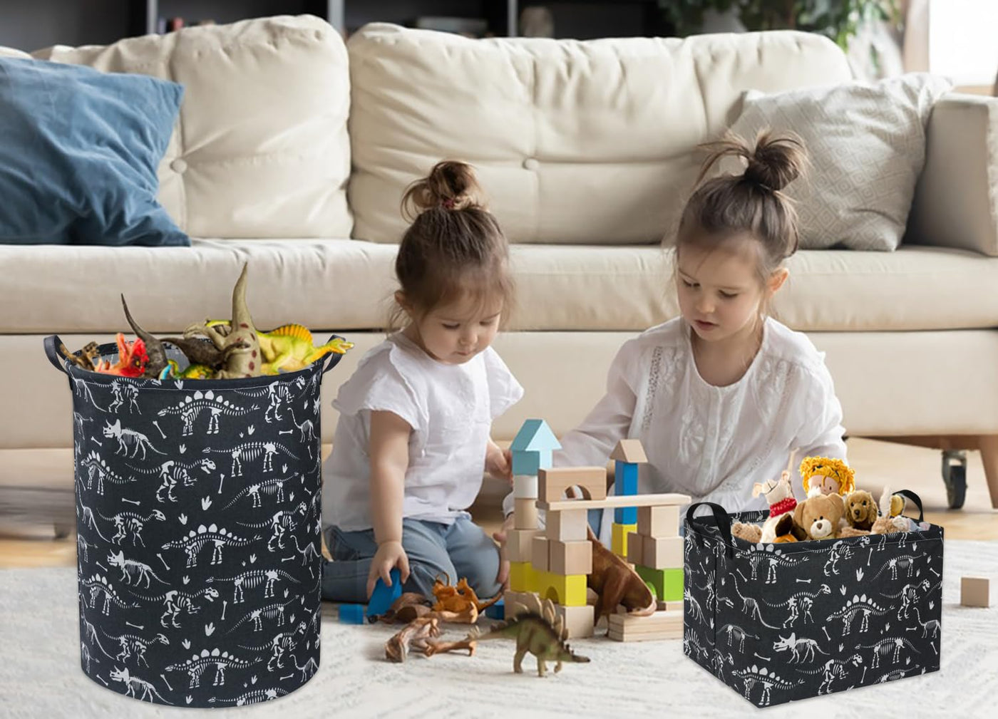 Q: Is this basket collapsible for easy storage?A: Yes, the HIYAGON Rectangular Dinosaur Basket features a collapsible design, allowing you to flatten and store it easily when not in use, making it a space-saving option for your home.