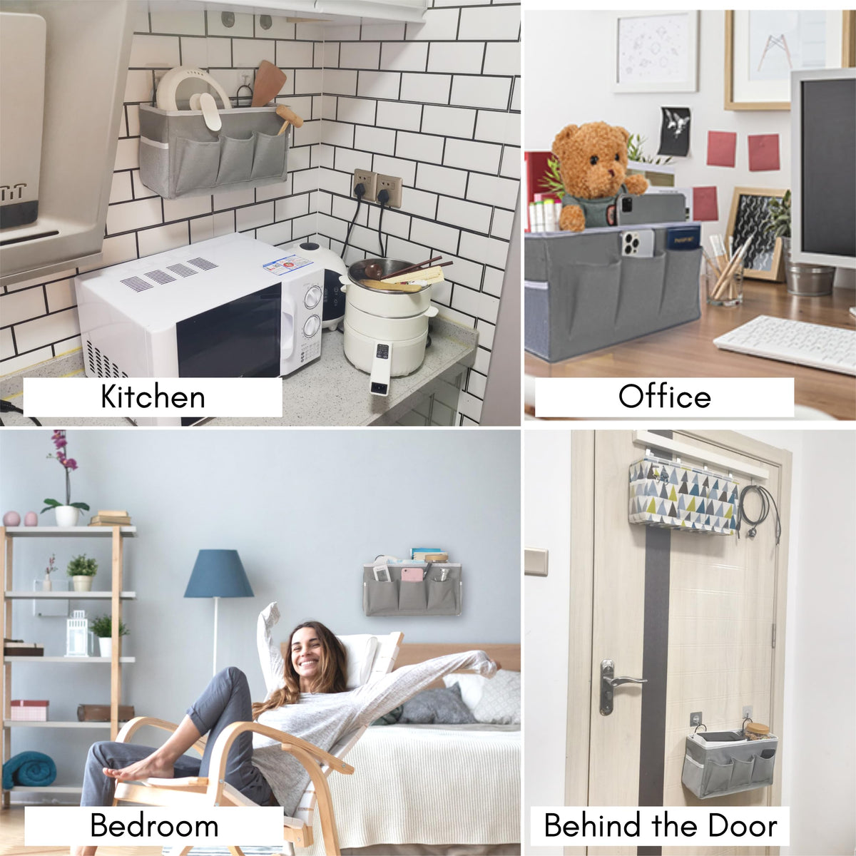 Q: Where can I use the Kanrichu wall hanging organizer?A: The hanging organizer is versatile and can be used in various settings such as the bedroom, bathroom, office, RV camper, or even hung on chairs, doors, or walls for convenient access.