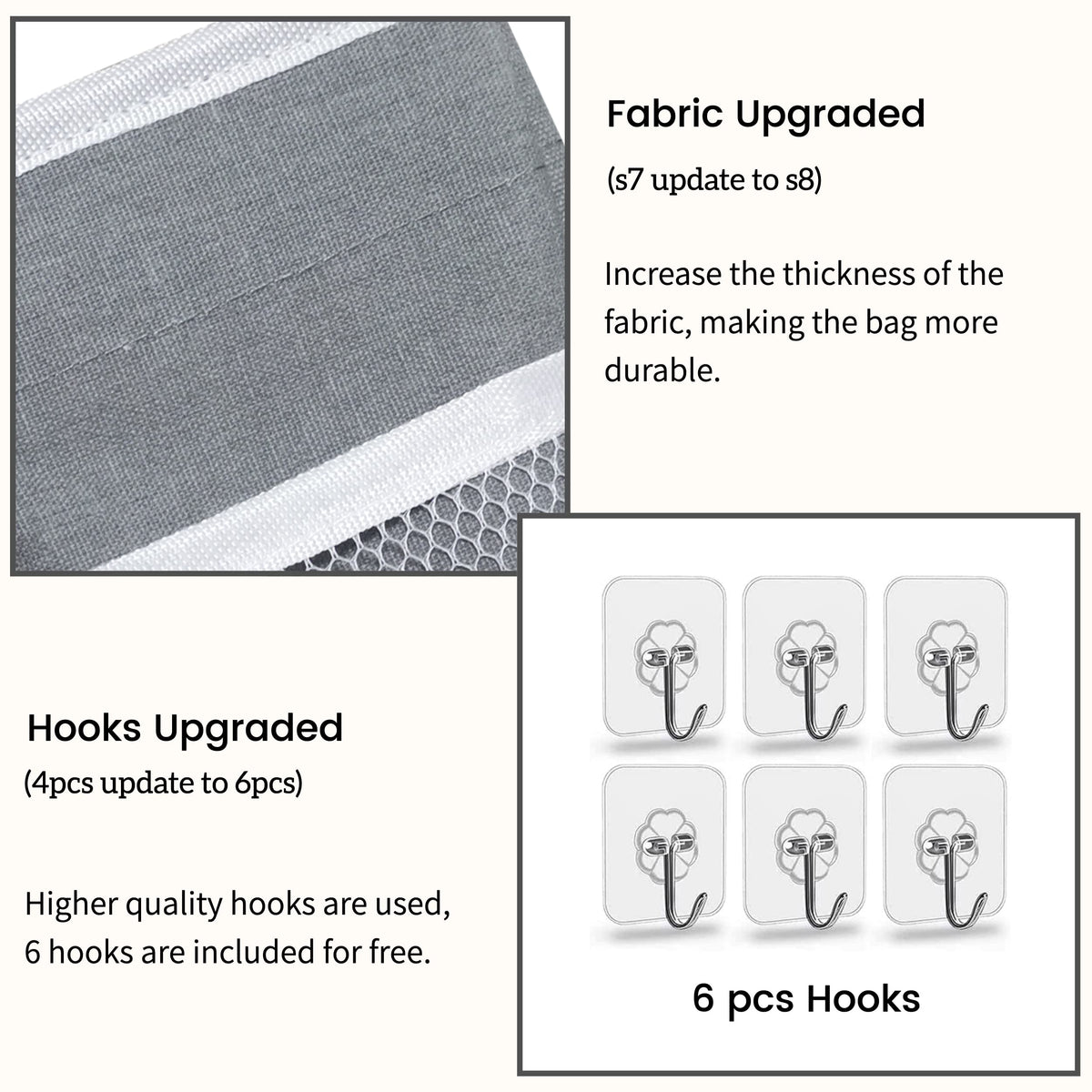 Q: What is the storage capacity of the Kanrichu wall hanging organizer?A: The Kanrichu wall hanging organizer features an upgraded design that offers twice the storage capacity compared to the previous version, allowing you to store more items effectively.