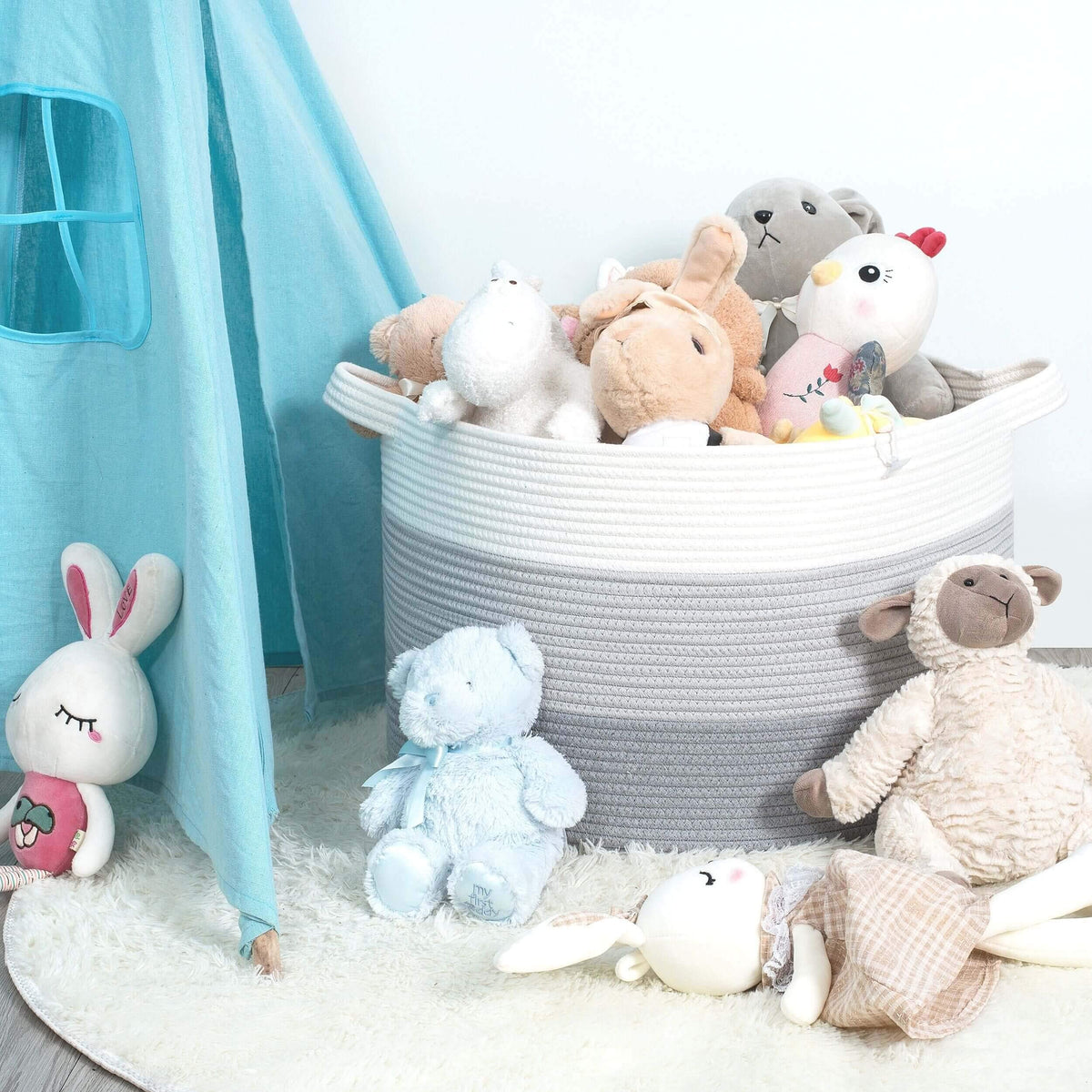 Mintwood Design Extra Large 22 X 14 Inches Decorative Cotton Rope Basket, Blanket Basket Living Room, Laundry Basket, Woven Basket, Toy Storage Baskets Bin, Round Basket For Pillows, Towels - Grey