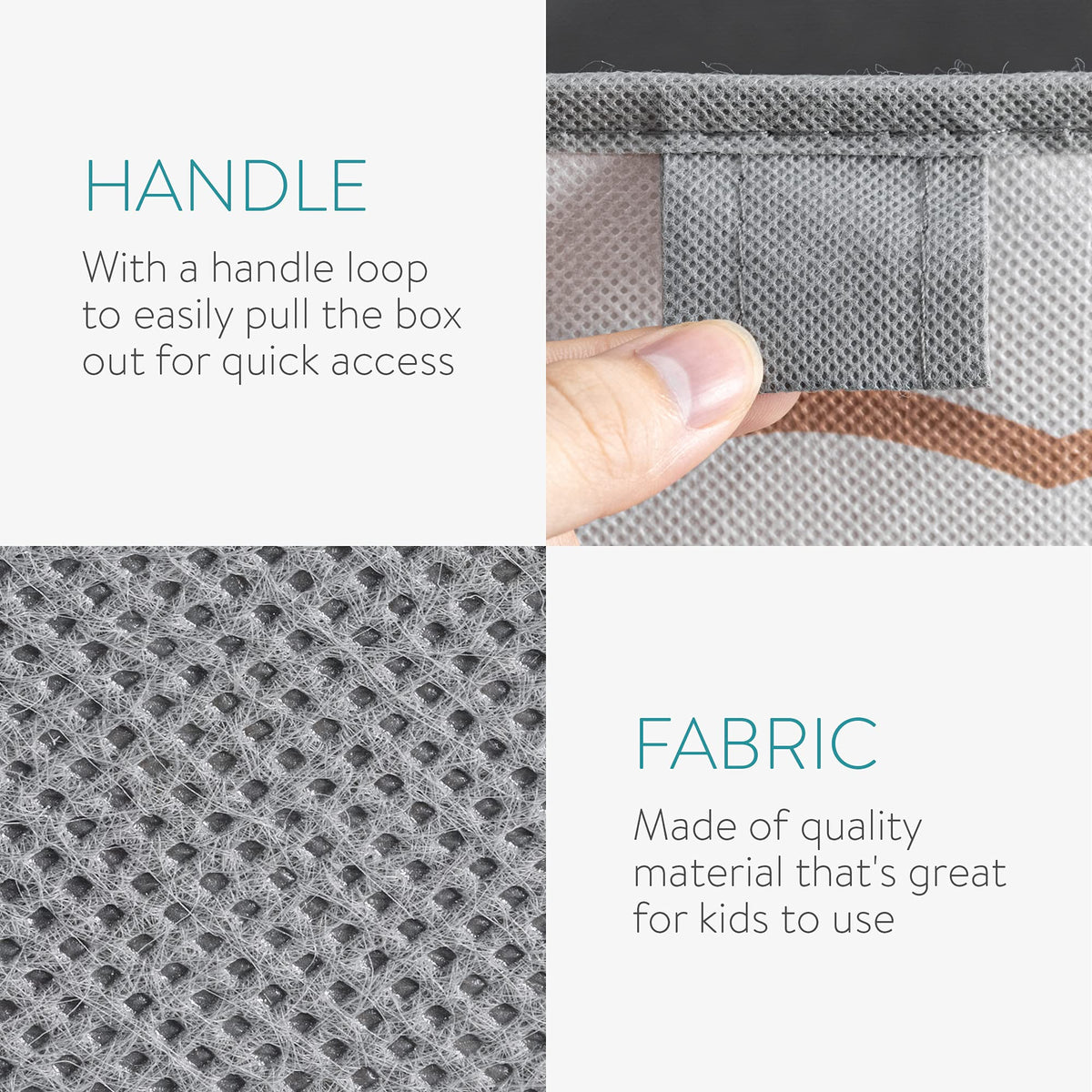 Measuring 11 x 11 x 11 inches, the boxes are the ideal size for storing kids toys, clothes and other small items. They can be used in many standard cube unit shelves, or placed on the floor or inside of a closet.
