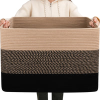 Oiahomy 108L Super Large Blanket Basket, 25 X16 X16 Rectangle Woven Baskets For Storage, Cotton Rope Basket For Living Ro
