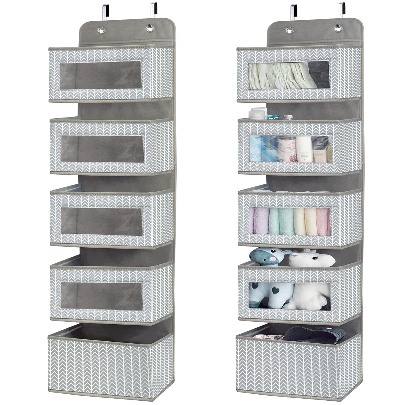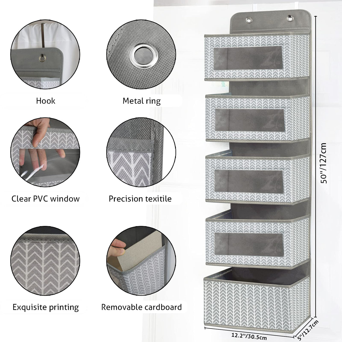 Tile:Over The Door Hanging Organizer With 5 Large Pockets - Wall Mount Pantry Storage With Clear Pvc Window & 2 Big Metal Hooks For Closet,Bathroom,Nursery,Bedroom,Dorm,Baby Diapers,Kids Toys (Gray) &Nbsp;Why You Should Choose Us?&Nbsp;?Large Capacity?: The Overall Size Of This Veronly Over The Door Hanging Organizer Is 12.2 (Width)X5 (Depth)X49.6 (Height). It With 5 Large Pockets, Each Pocket Measures 12.2X5X6.1Inch, You Can Use It Behind/Back Of The Door To Hold Baby Diapers, Kids Toys, Etc. &Nbsp;?Perfect Visibility?:The Clear Pvc Window In Fronts Of These Over The Door Pantry Organizers Makes It Easy For You To See What'S Inside Of The Pocket.&Nbsp;?Sturdy Than Normal?:The Bottom And Each Sides Of This Over The Door Pocket Organizer Adopt 2Mm Thick Hard Cardboard, Outside Covered With Premium Quality Non-Woven Fabric, Which Is Breathable, Strong And Durable With Long Life-Span.&Nbsp;?Multi-Purpose?:The Over The Door Storage Organizer Can Be Widely Used In Your Nursery, Pantry, Bathroom, Bedroom, Hang On The Closet Or Cabinet Door, Or Mounted On The Wall To Store Different Kinds Of Stuffs, Such As Baby Diapers, Bottles, Kids Toys, Make-Up Cosmetics, Food, Snacks, Tissues, Toilet Paper, Hair Dryer, Etc.&Nbsp;?Easy To Install?: This Over The Door Closet Organizer Will Come With 2 Thicken And Widen Metal Hooks, 10 Side Boards, 5 Bottom Plates, And The Body Organizer In The Package, It Suitable For Most Of Doors Within 1.57 Thickness, You Can Easily Install It By Yourself, No Hardware Needed.
