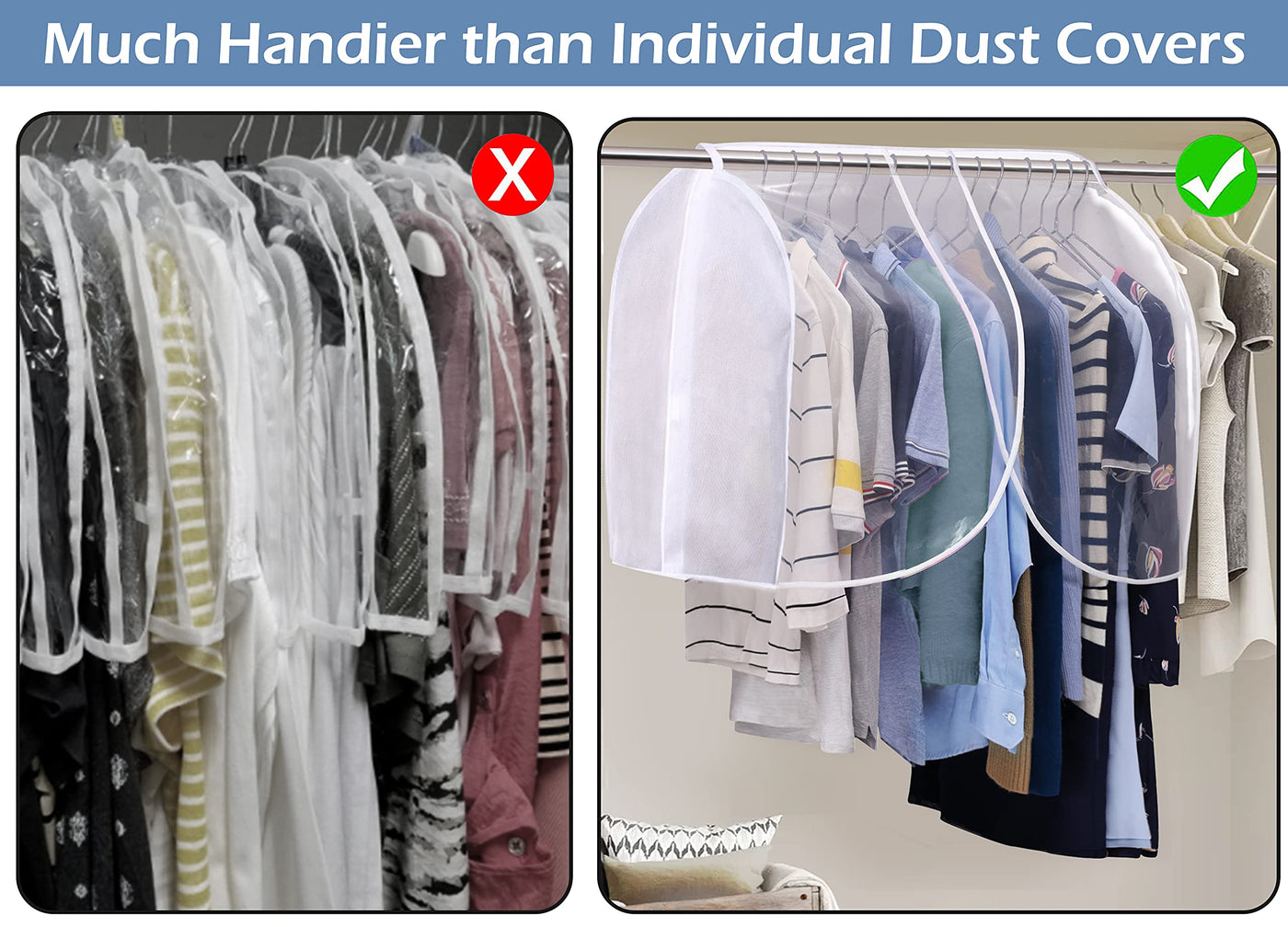 Q: Is the cover suitable for long-term storage?A: Yes, this dustproof garment protector is designed for long-term storage while preventing dust accumulation on your clothes, keeping them smooth and organized.