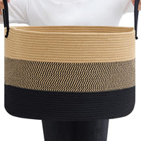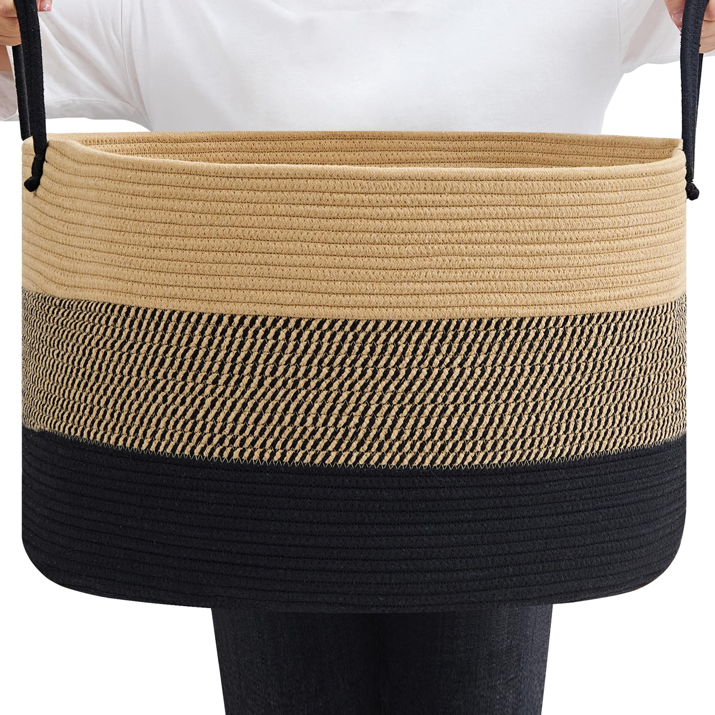 Specifications: Color: Jute/Black Material: Cotton Item Weight: 3.99 Lbs Features: Durable, Versatile, Lightweight, Aesthetically Pleasing. Applicable Items: Clothes, Blankets, Pillows, Cushions, And Baby Toys. Applicable Locations: Living Room, Bedroom, Laundry, Nursery, Etc.Vecelo Notes: After Receiving The Blanket Basket, Please Fill It With Pillows Or Blankets To Restore Its Shape. And Iron The Basket Creases Can Return To The Right Shape. Avoid Contact With Sharp Knives To Prevent Scratches.