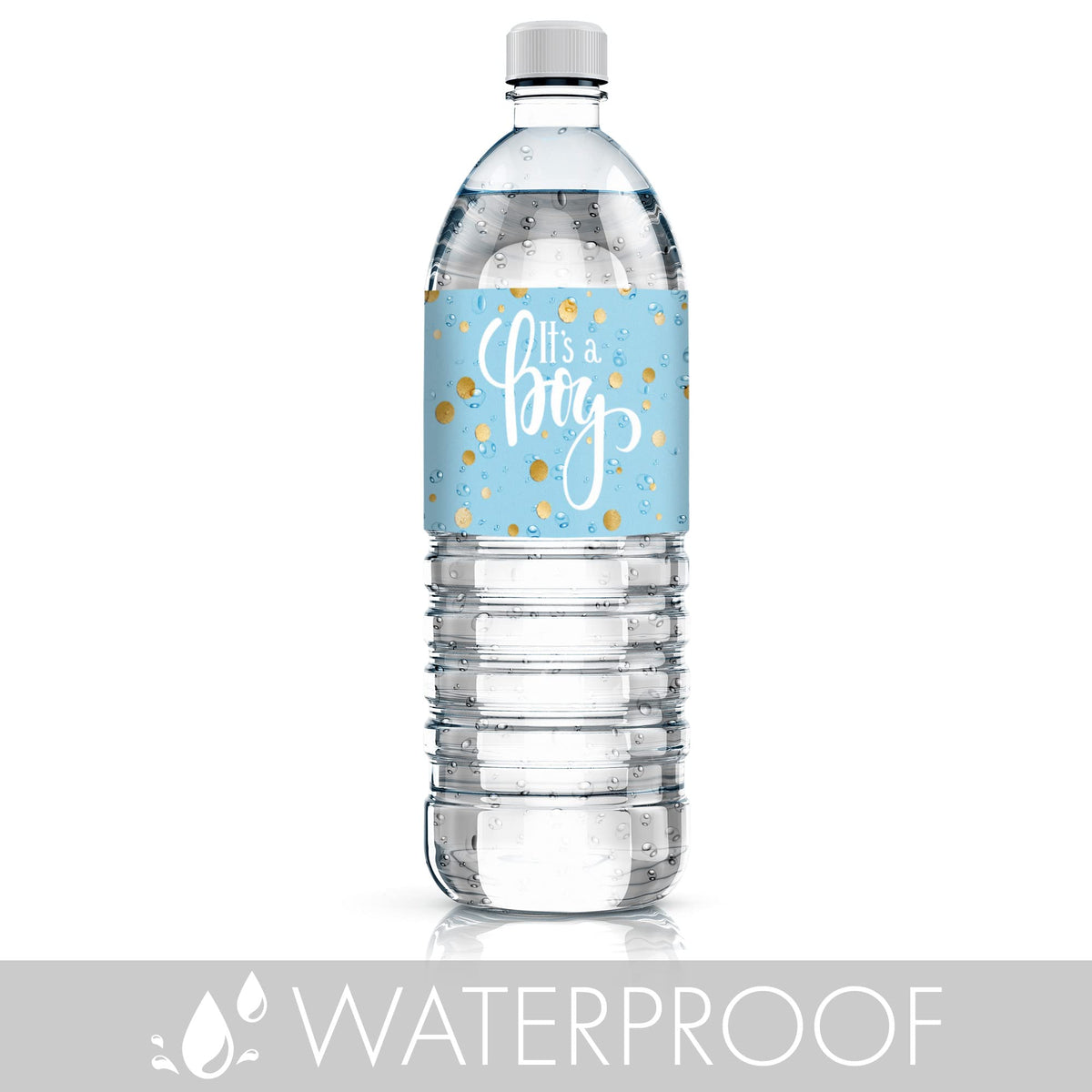 Q: Are the labels waterproof?A: Yes, the Blue and Gold It's a Boy water bottle labels are waterproof, ensuring they remain intact even when exposed to moisture.