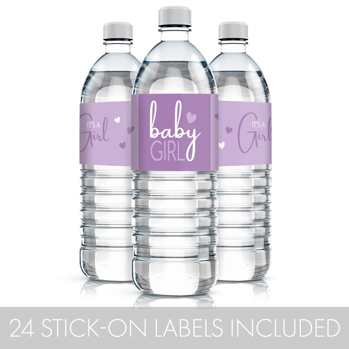 Purple Its A Girl Baby Shower Water Bottle Stickers, Lavender Baby Shower Waterproof Stickers For Water Bottles - 24 Count